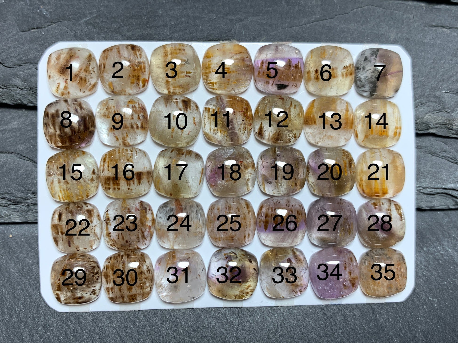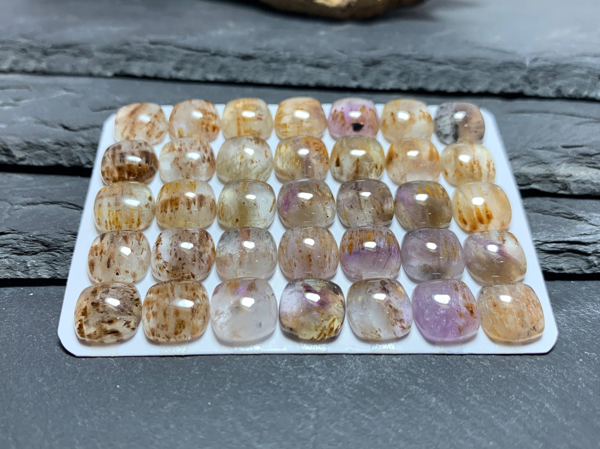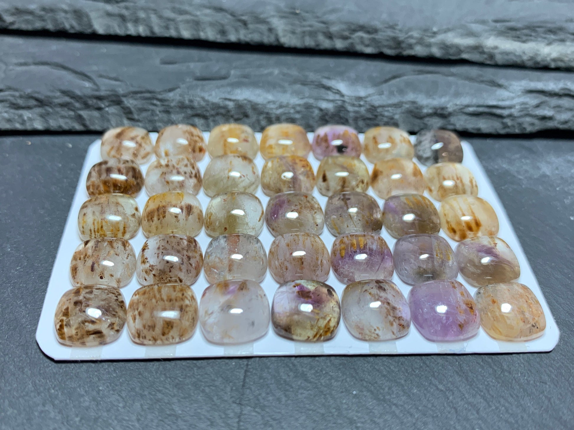Amethyst Cacoxenite square cushion 10mm cabochon - Calibrated cabochons