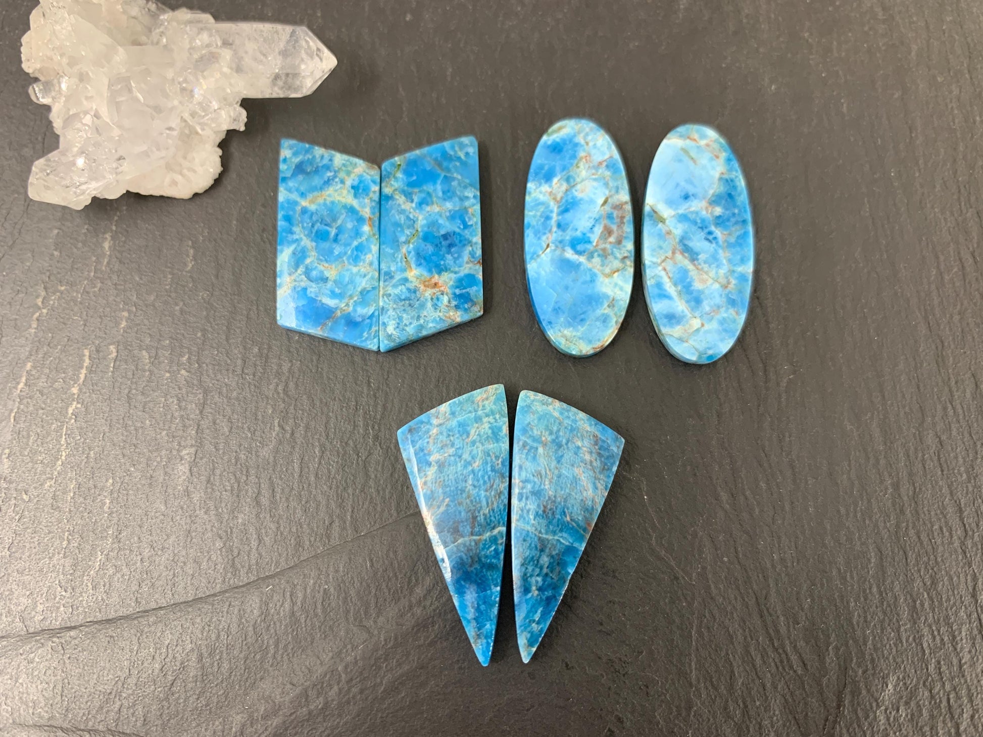 Apatite oval, free form 25-34mm long cabochon - Buy by pair