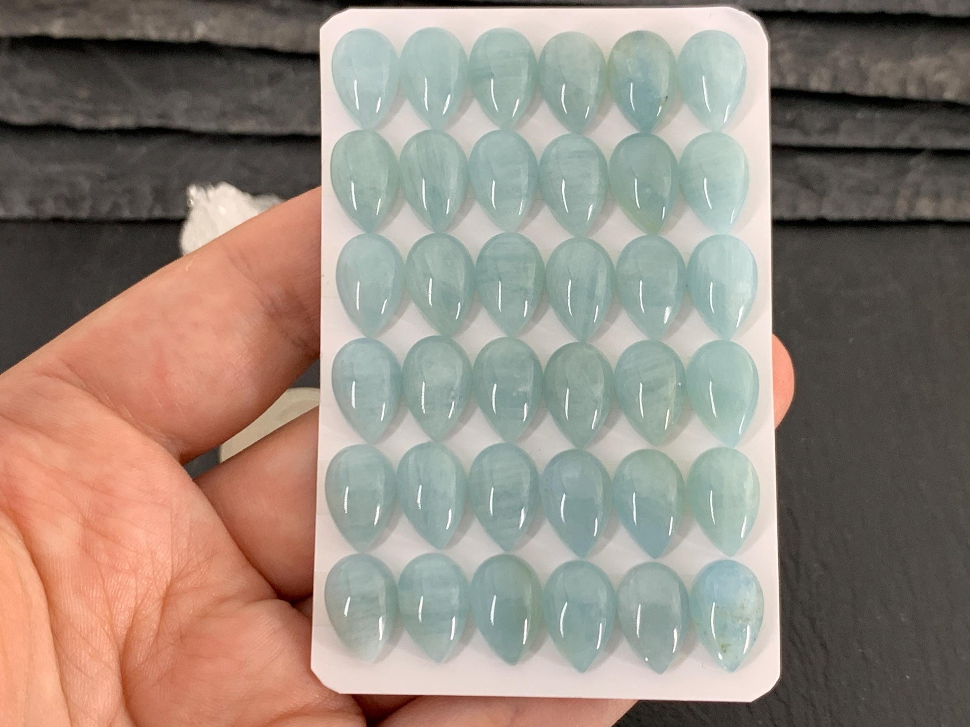 Aquamarine pear 8x12mm cabochon- Calibrated Aquamarine