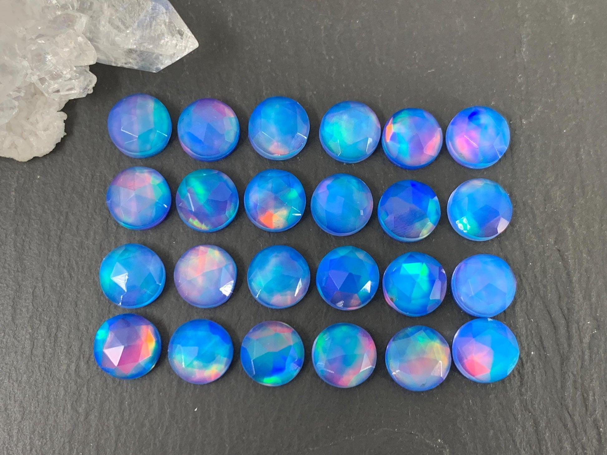 Faceted Aurora Opal round 8mm cabochon - Doublet cabochons