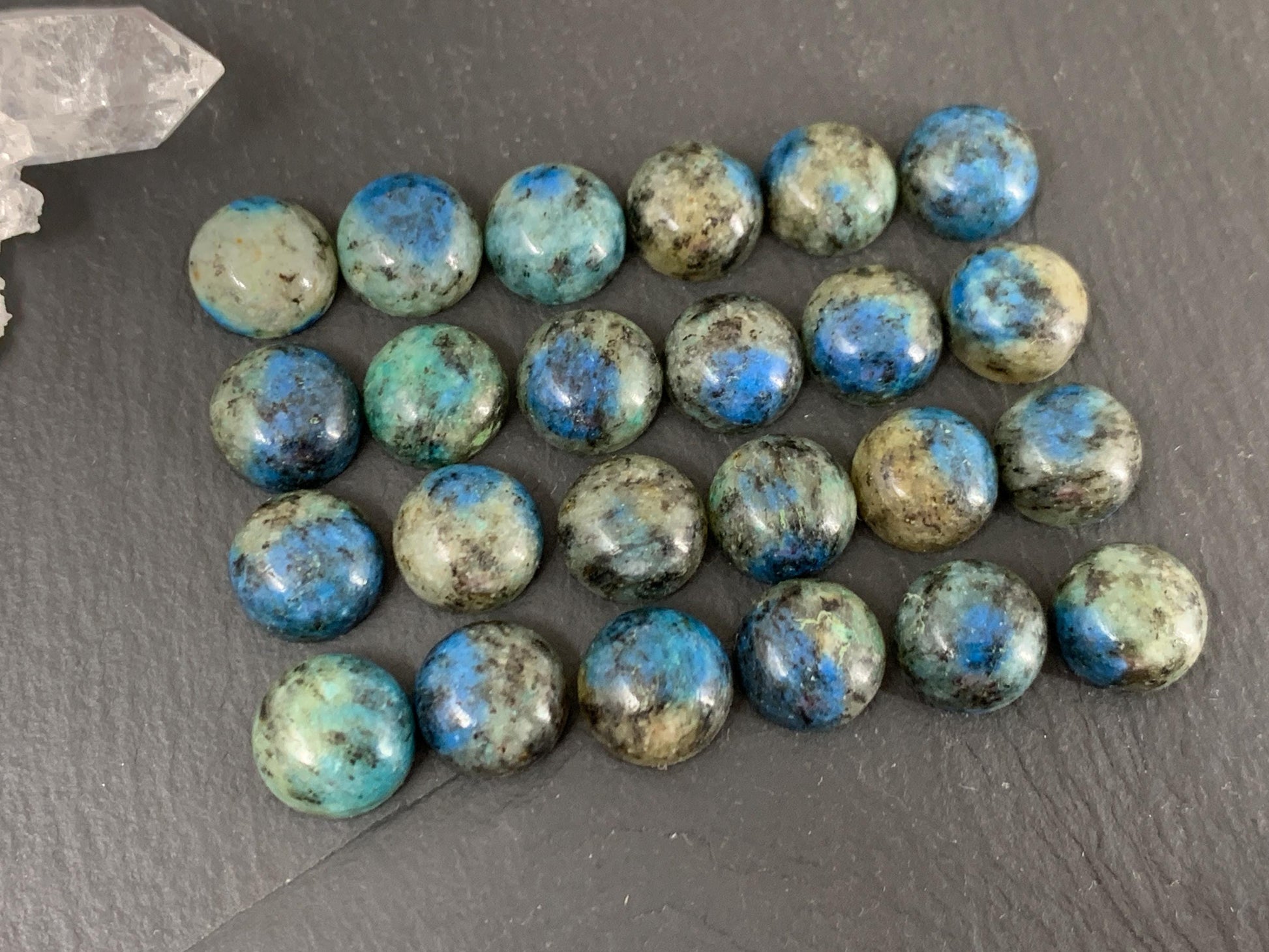 Azurite in Granite round 10mm cabochon - Calibrated cabochons.