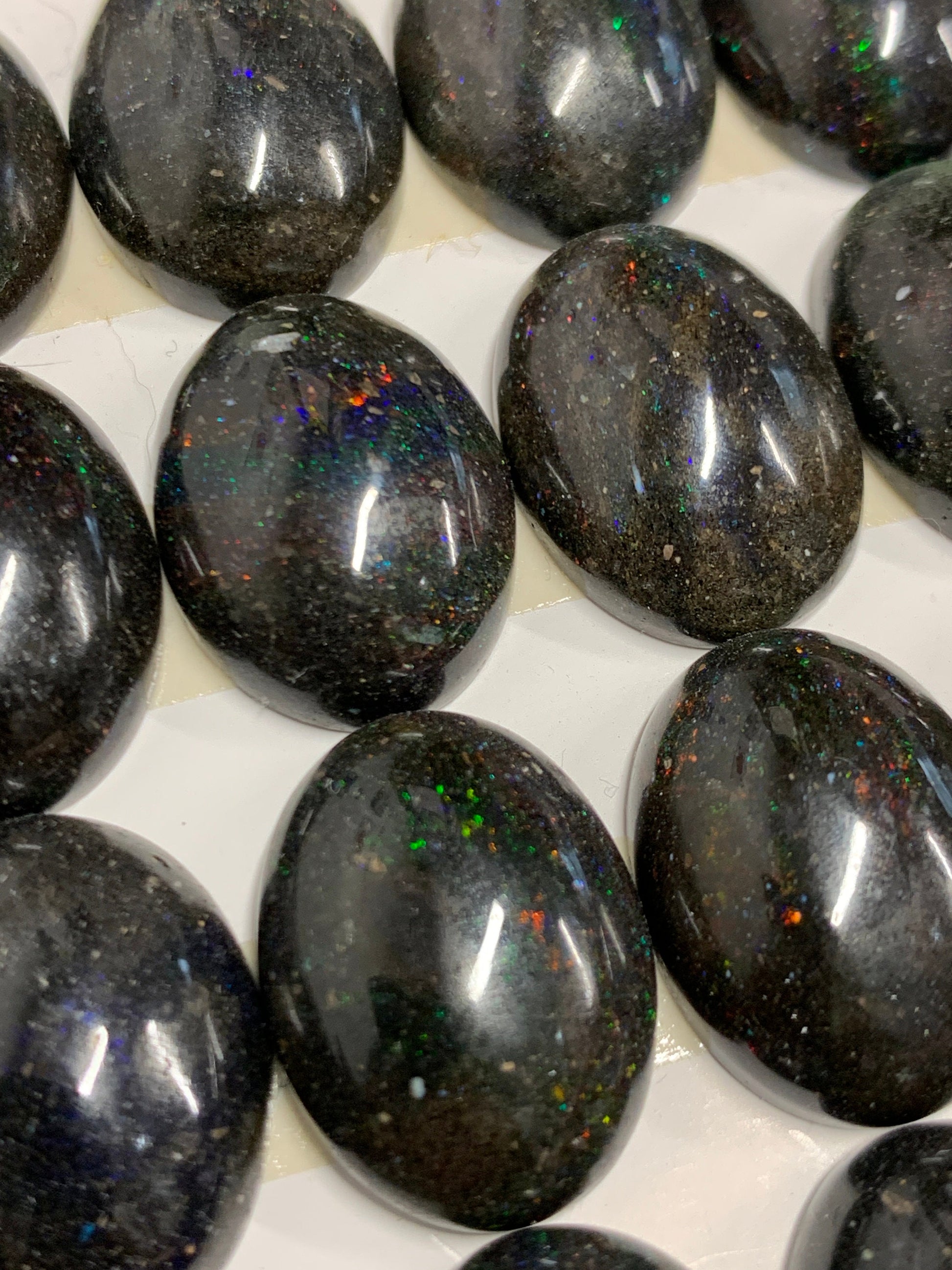 Black Andamooka Opal oval 10x14mm cabochon - Matrix Australian Opal