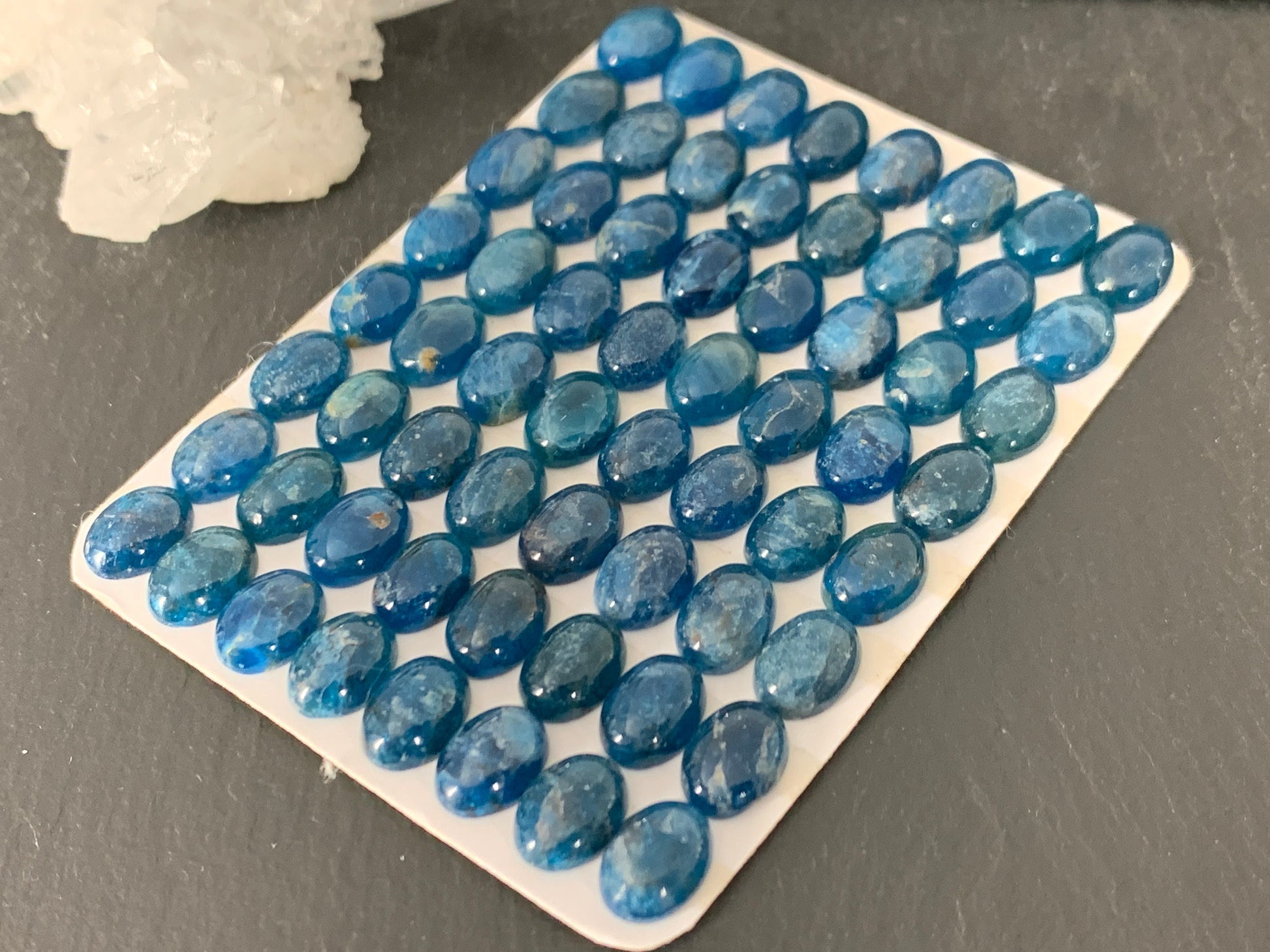 Blue Apatite oval 6x8mm cabochon - Calibrated cabochons