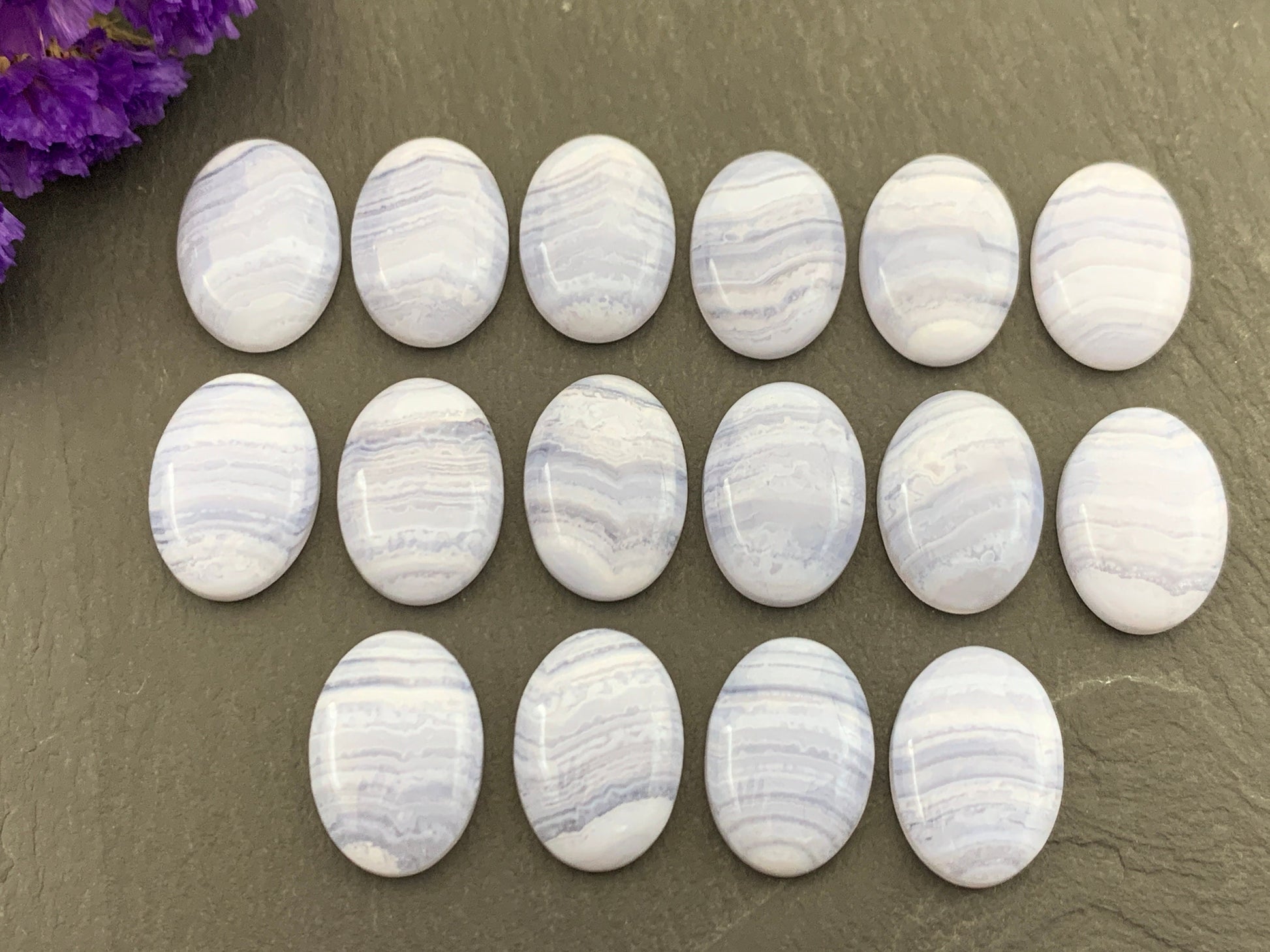 Blue Lace Agate oval 13x18mm cabochon - Calibrated cabochons