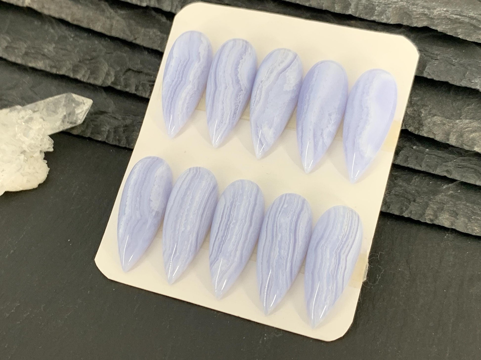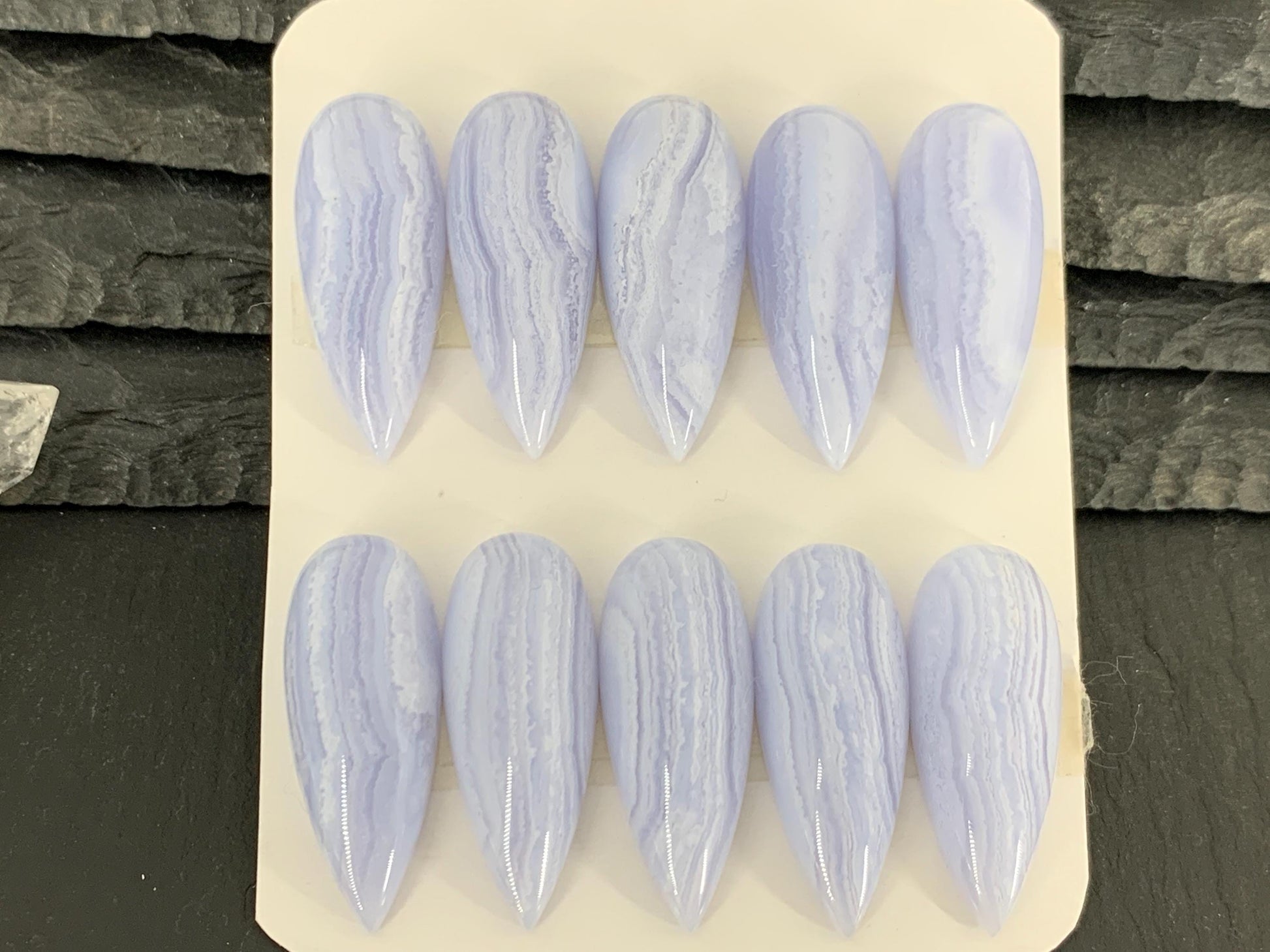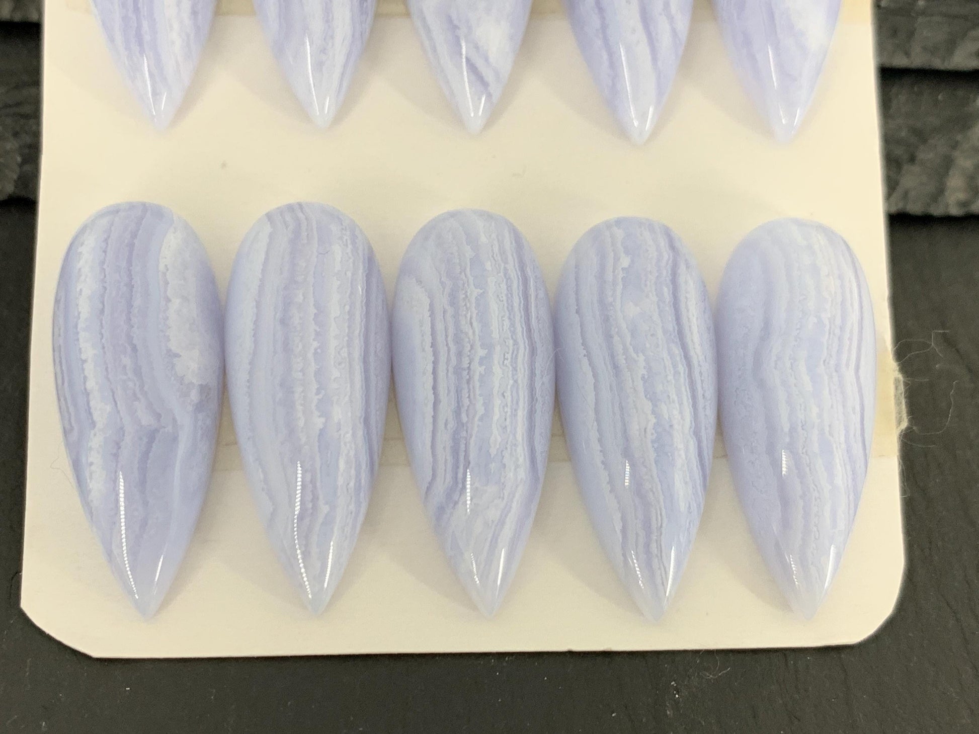 Blue Lace Agate Pear 12x30mm Cabochon: Calibrated Gemstone