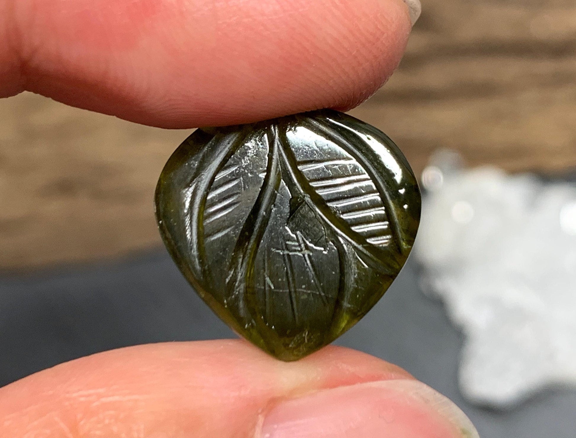 Carved Tourmaline 16x16x2mm cabochon