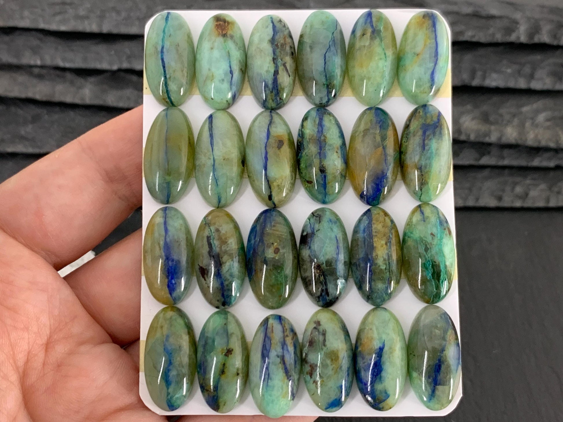 Chrysocolla Quartz oval 10x20mm cabochon - Calibrated cabochons