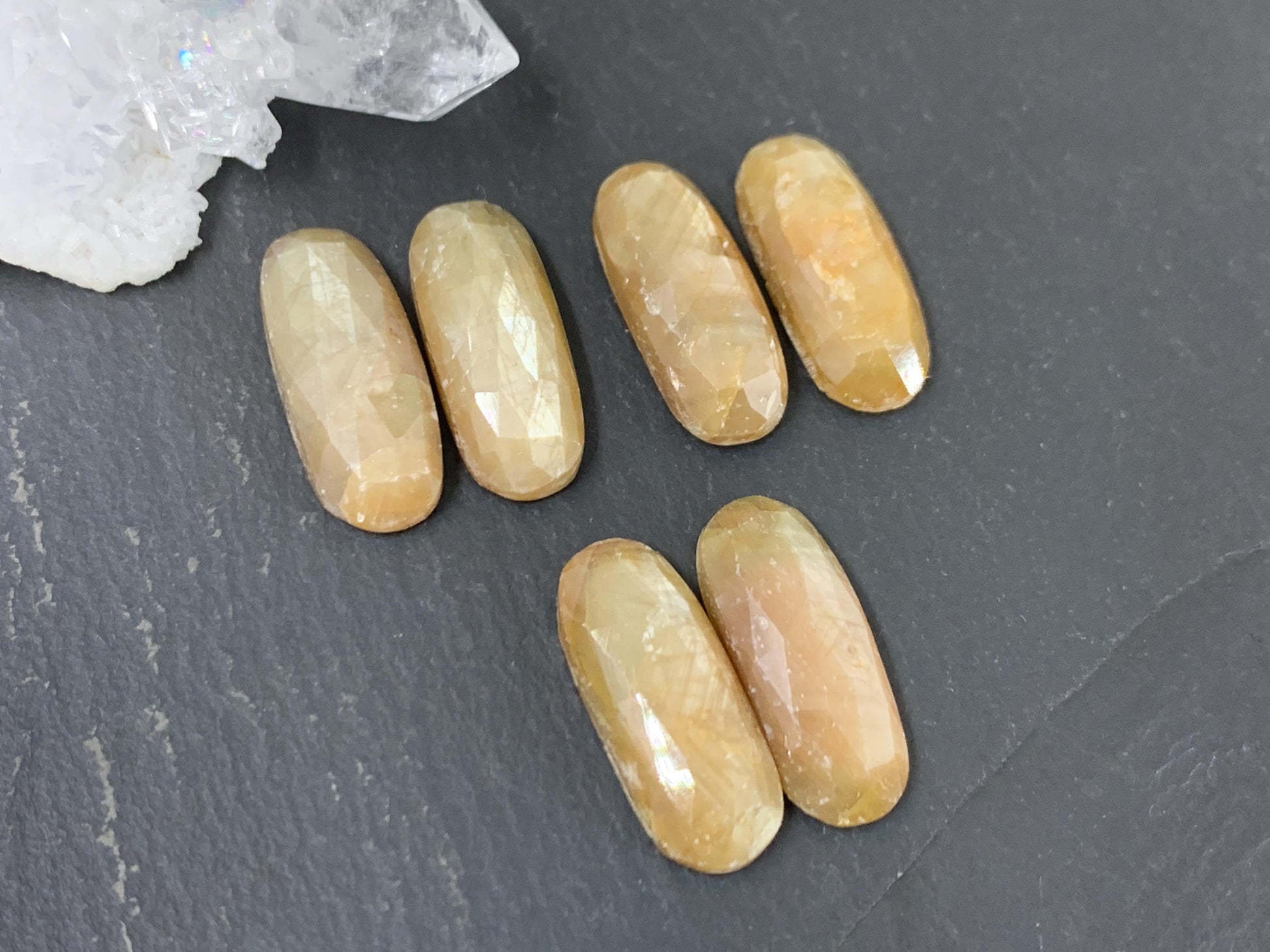 Discounted faceted Yellow Sapphire oval 8x20mm cabochon - Pair of cabochons