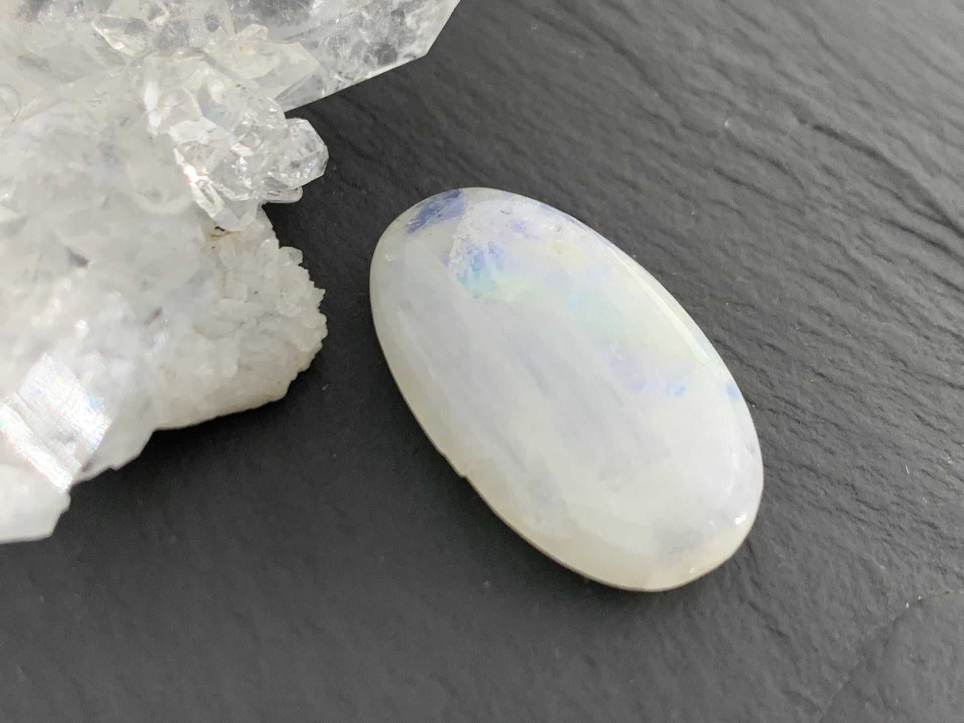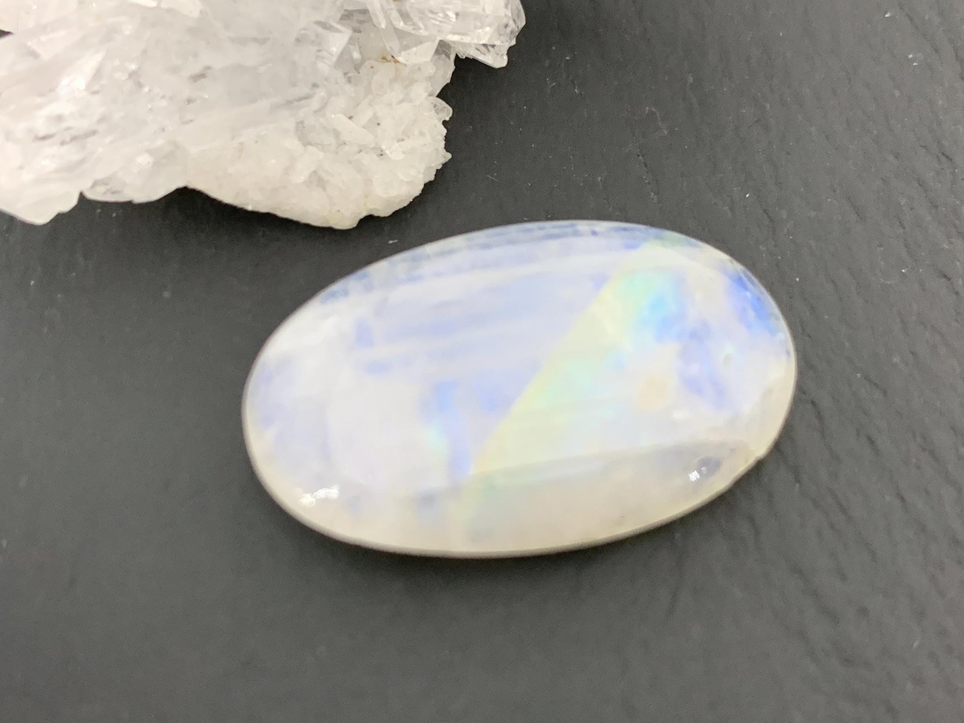 Gem Type: natural Rainbow Moonstone. Second quality cabochon