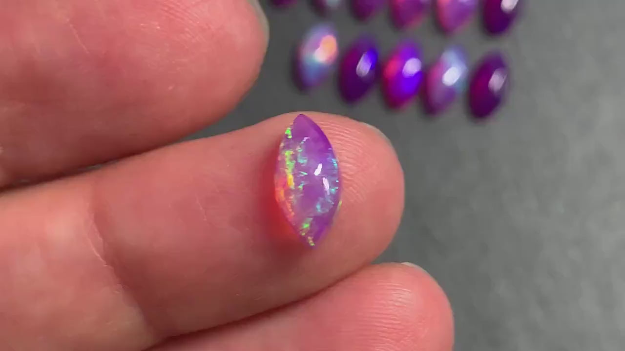 Gem Type: natural Ethiopian Opal smoked to purple color (The back of some cabochons is not flat, it is slightly rounded, please see last picture)