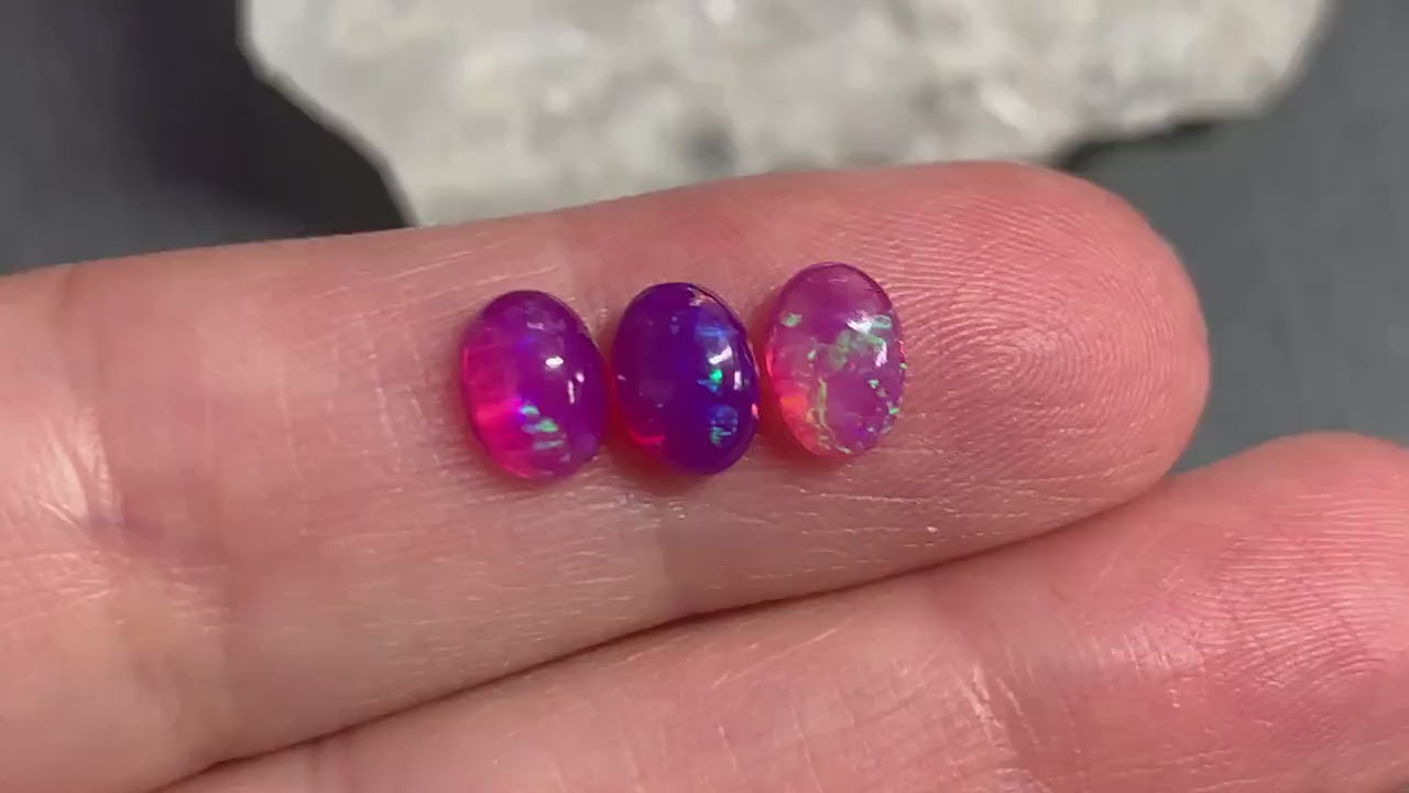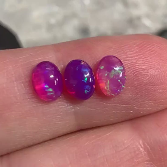 Gem Type: natural Ethiopian Opal smoked to purple color (The back of some cabochons is not flat, it is slightly rounded, please see last picture)