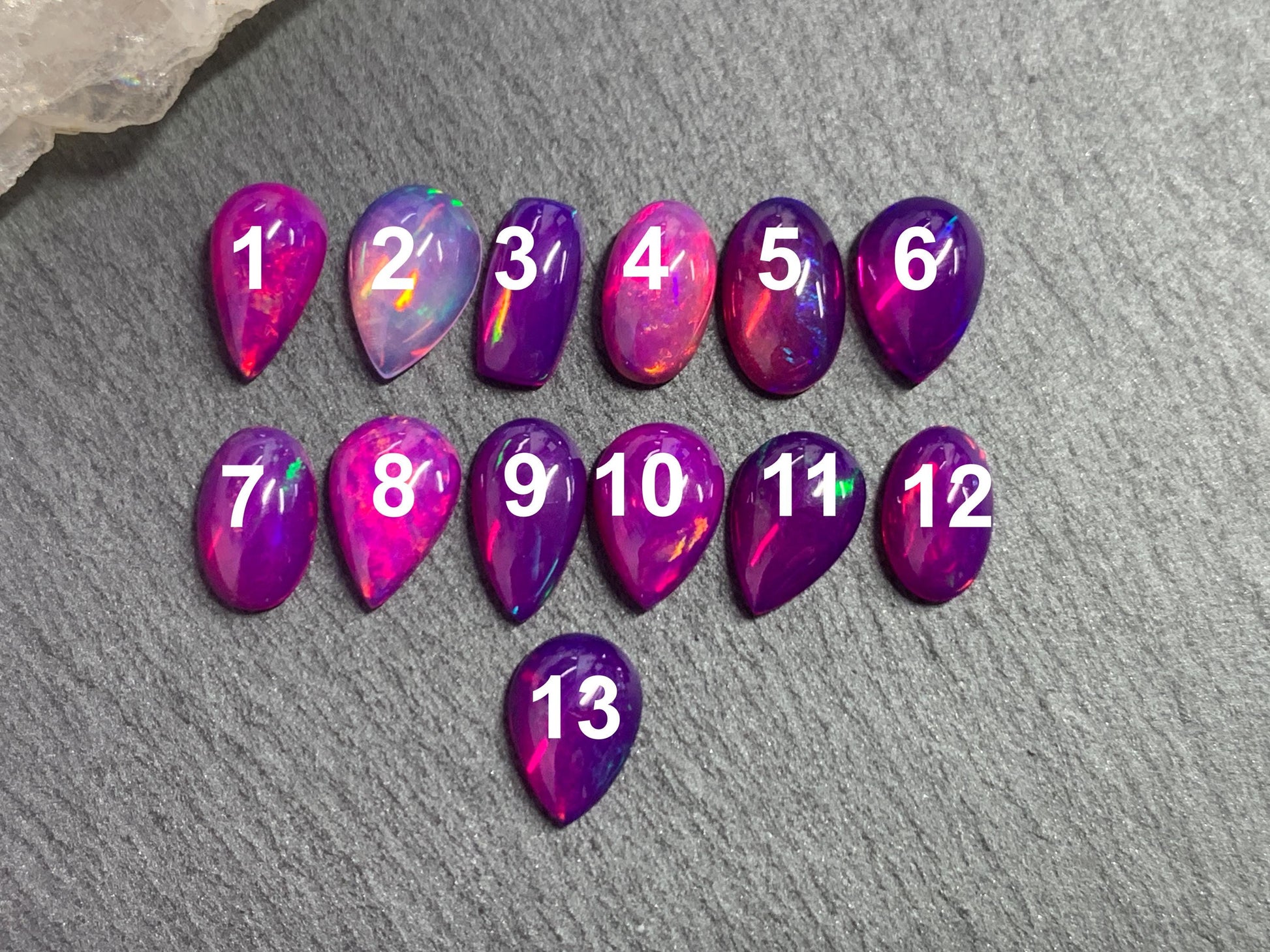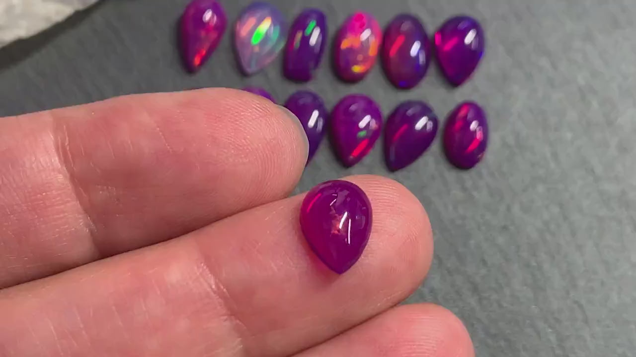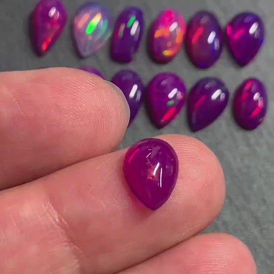 Ethiopian Opal oval, pear, rectangle 10mm long cabochon - Natural Opal smoked to purple color