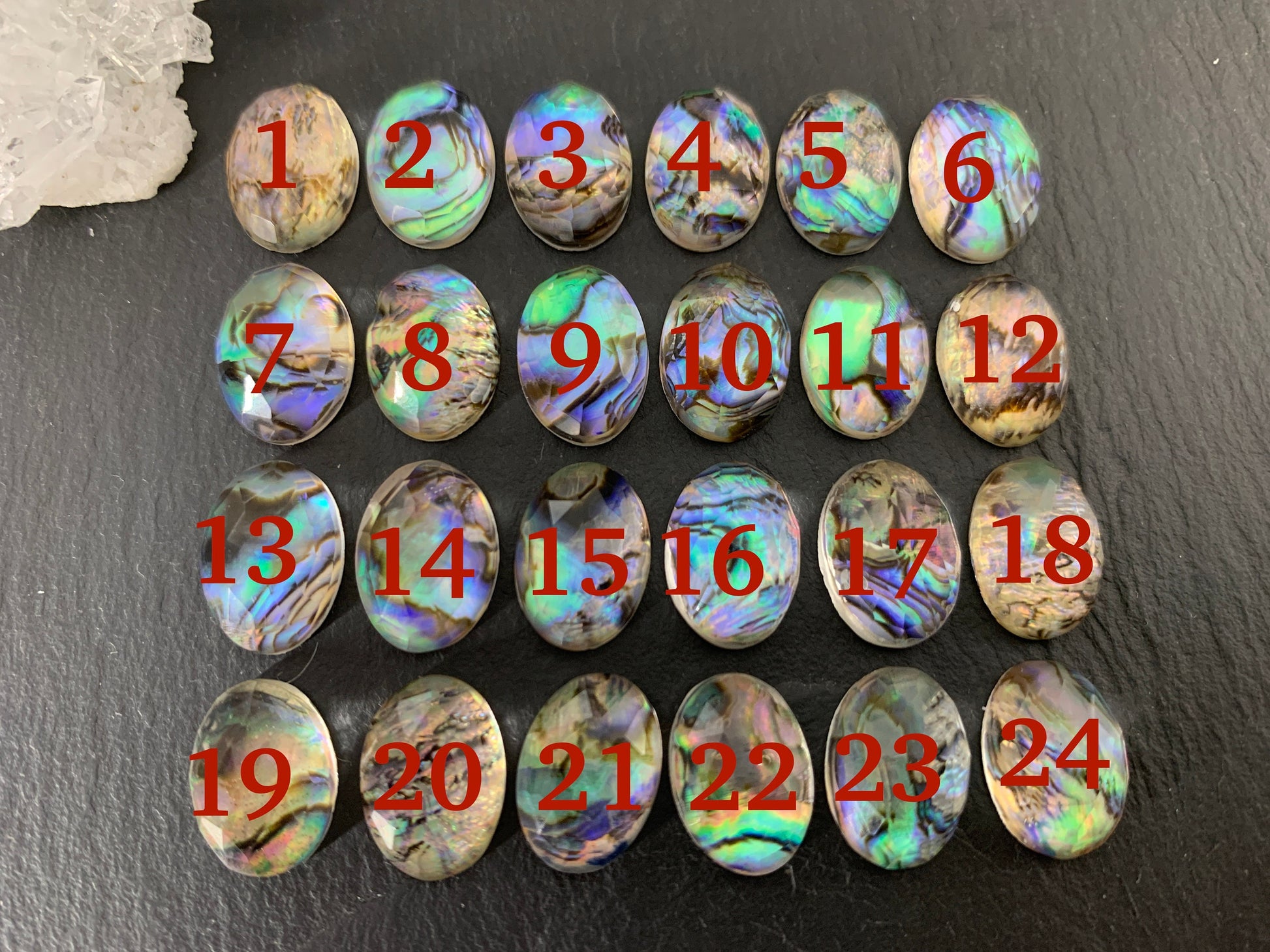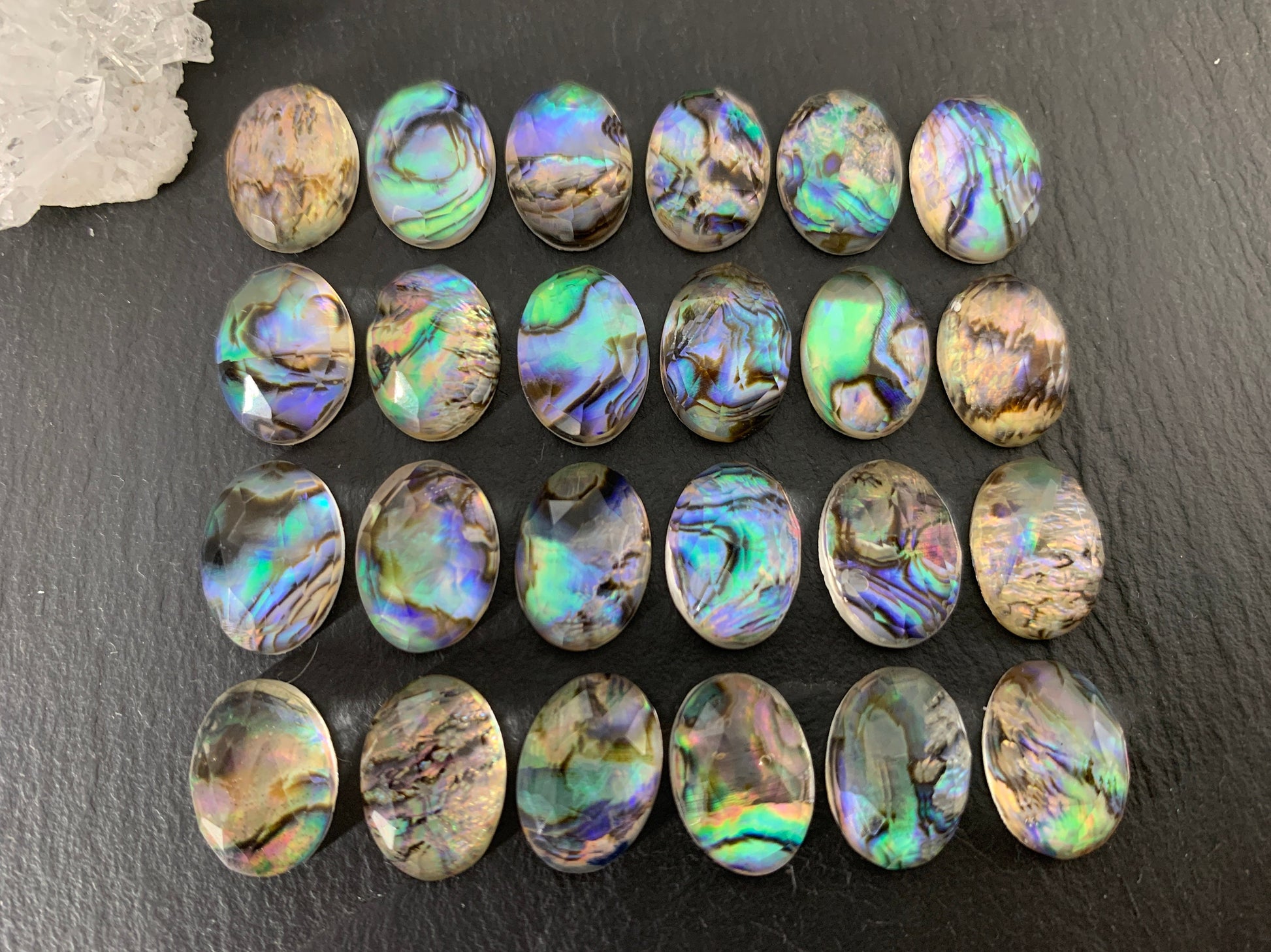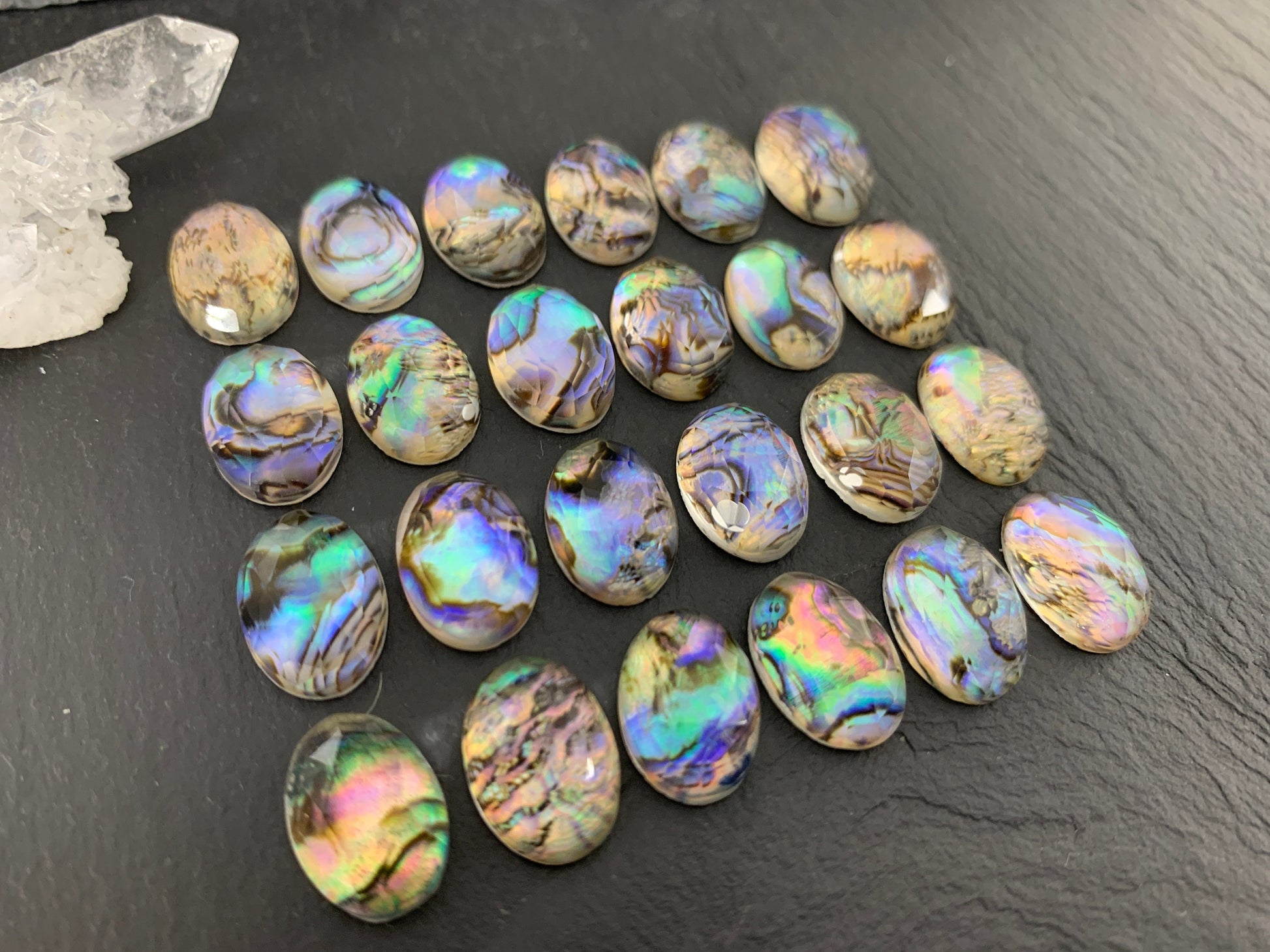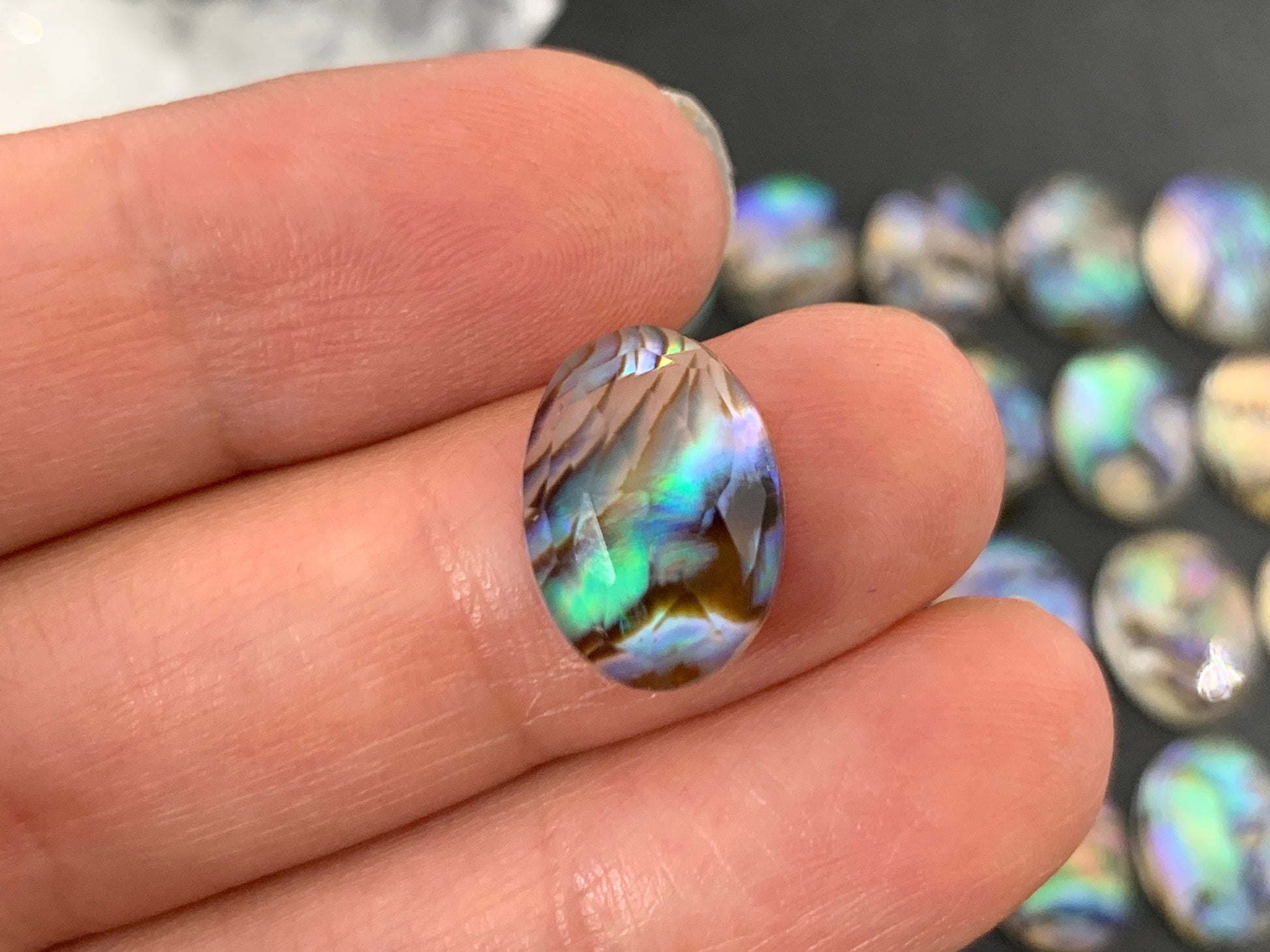 Faceted Abalone oval 10x14mm doublet cabochon