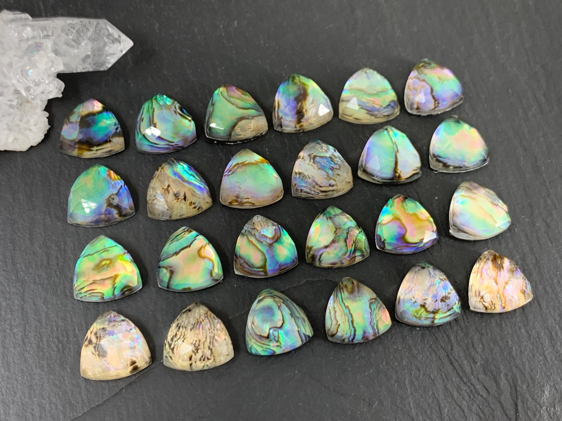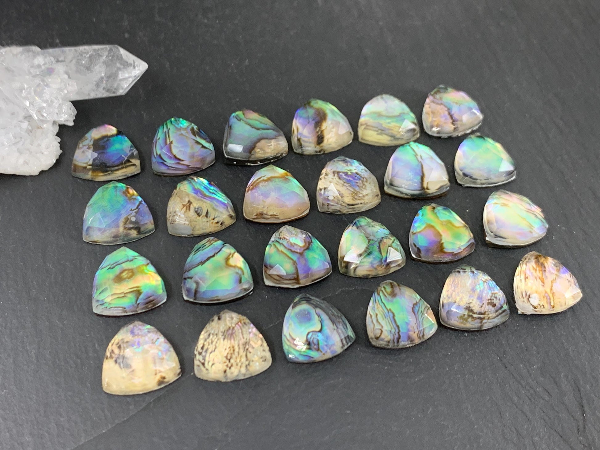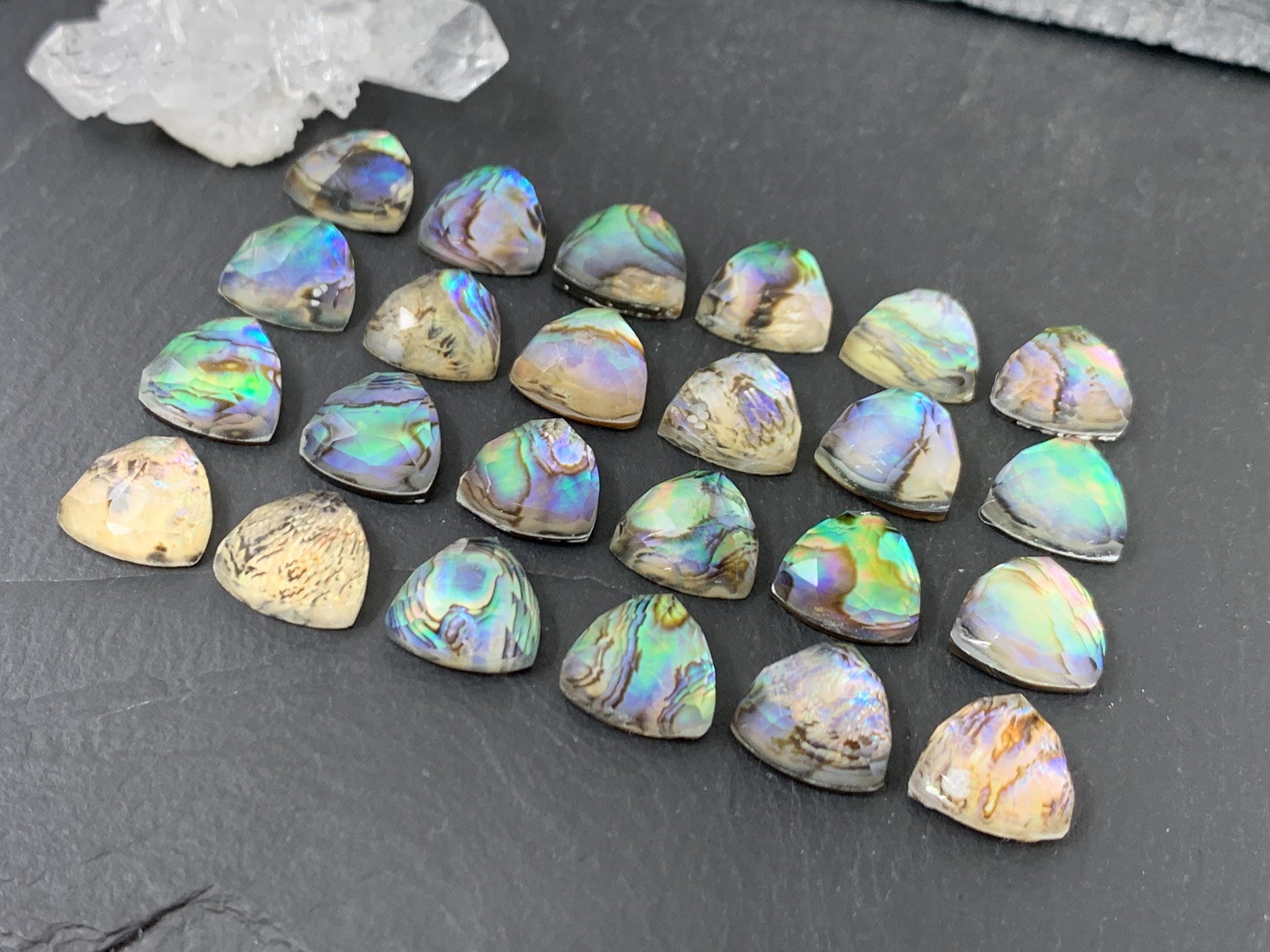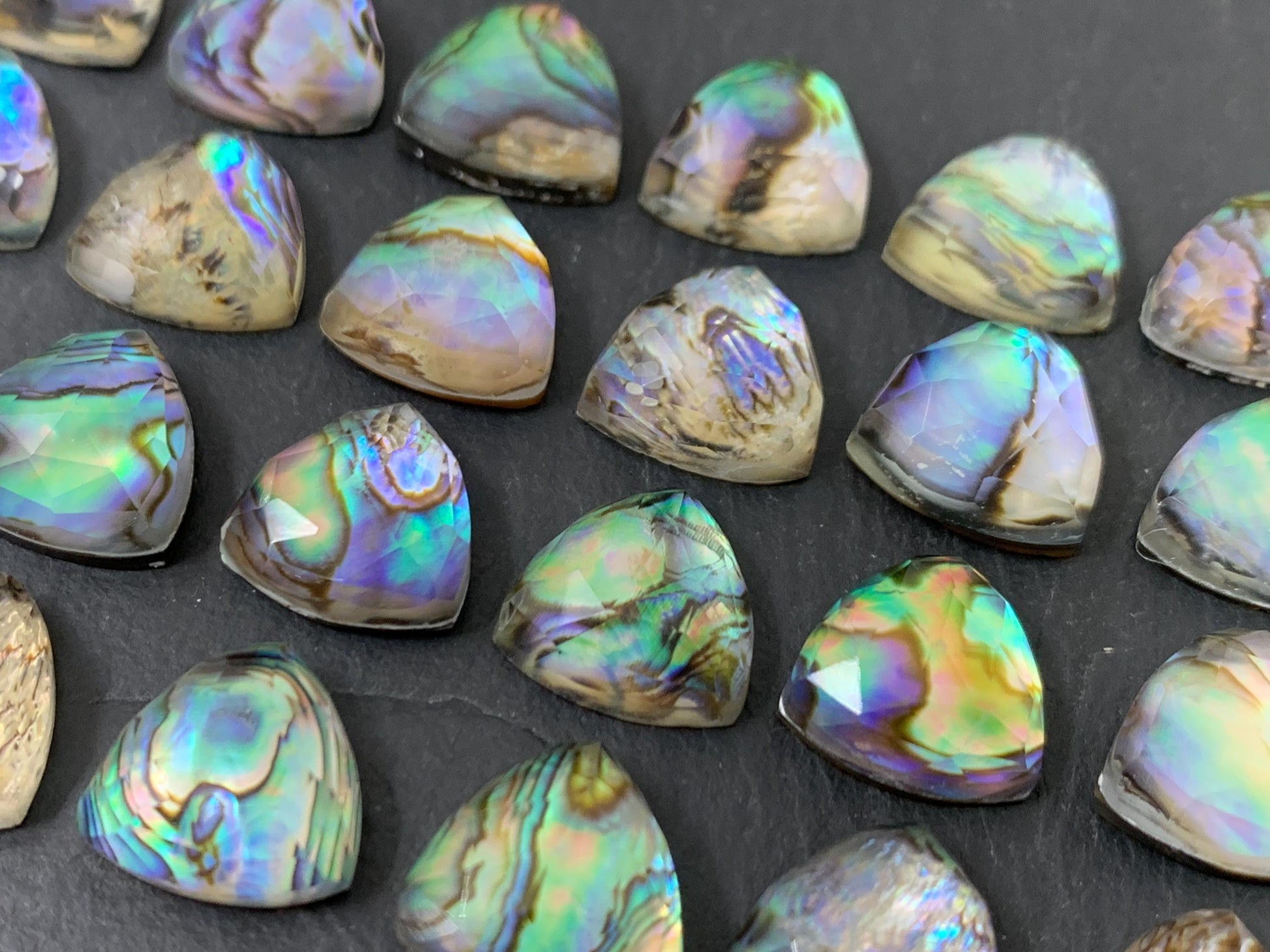 Faceted Abalone triangle 12mm doublet cabochon
