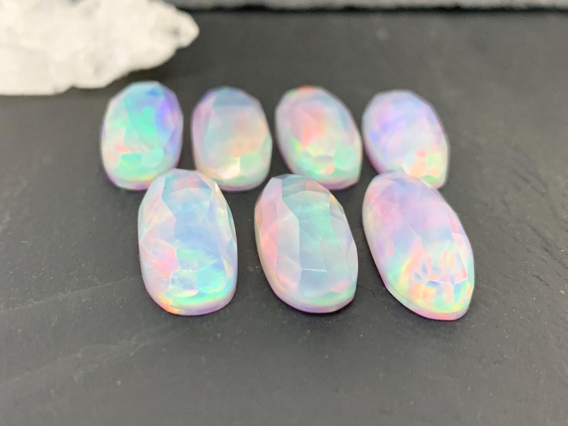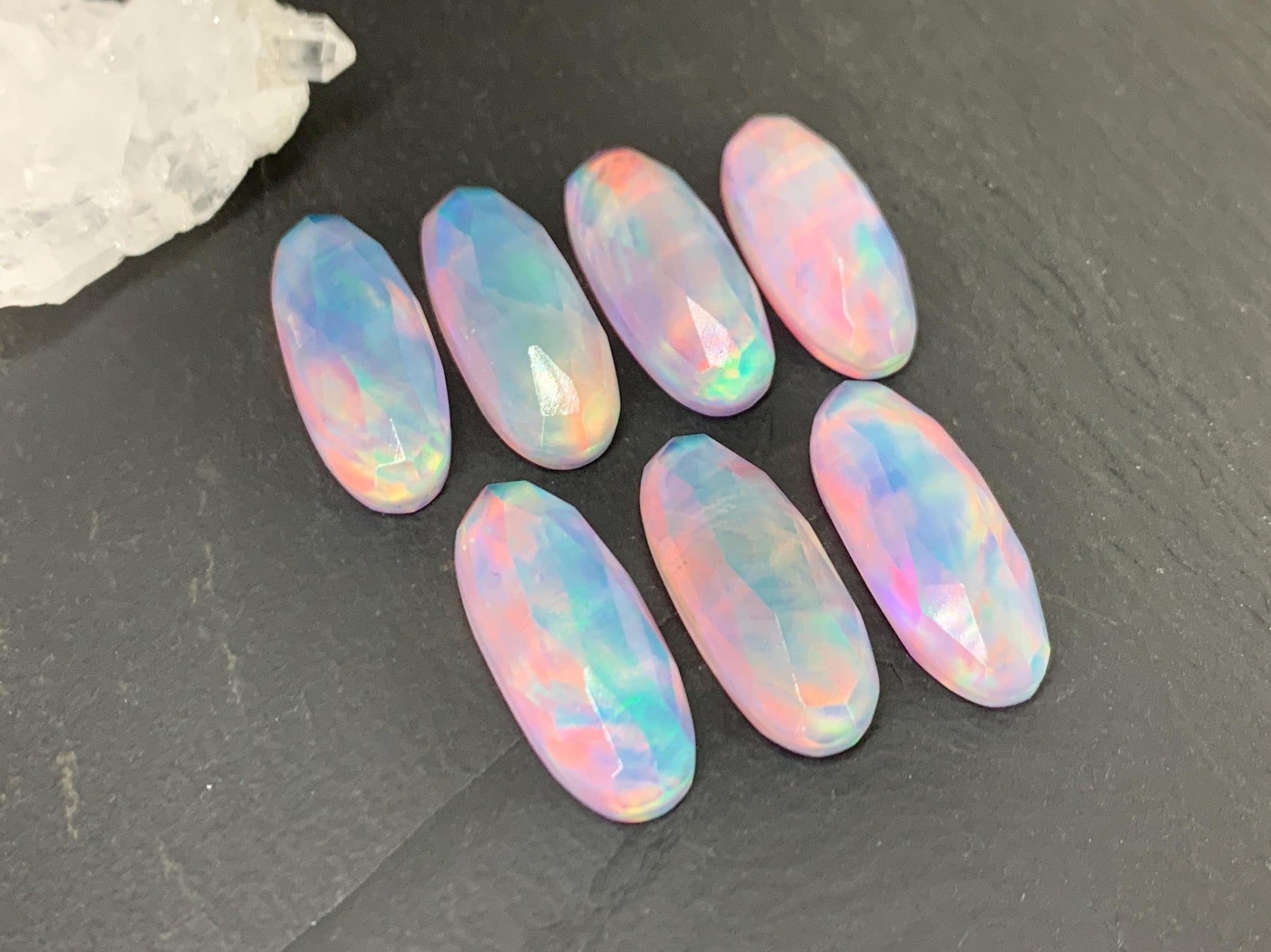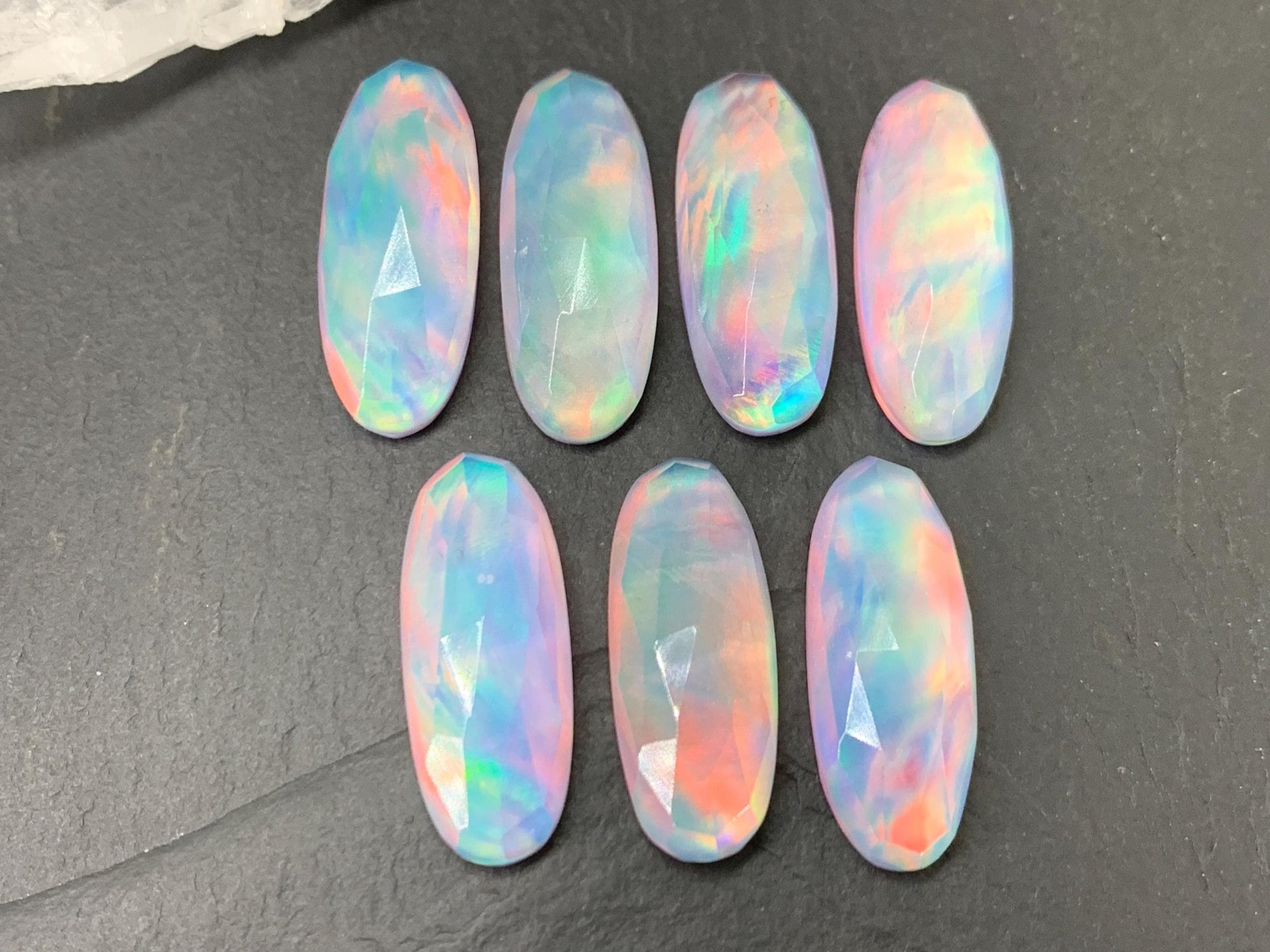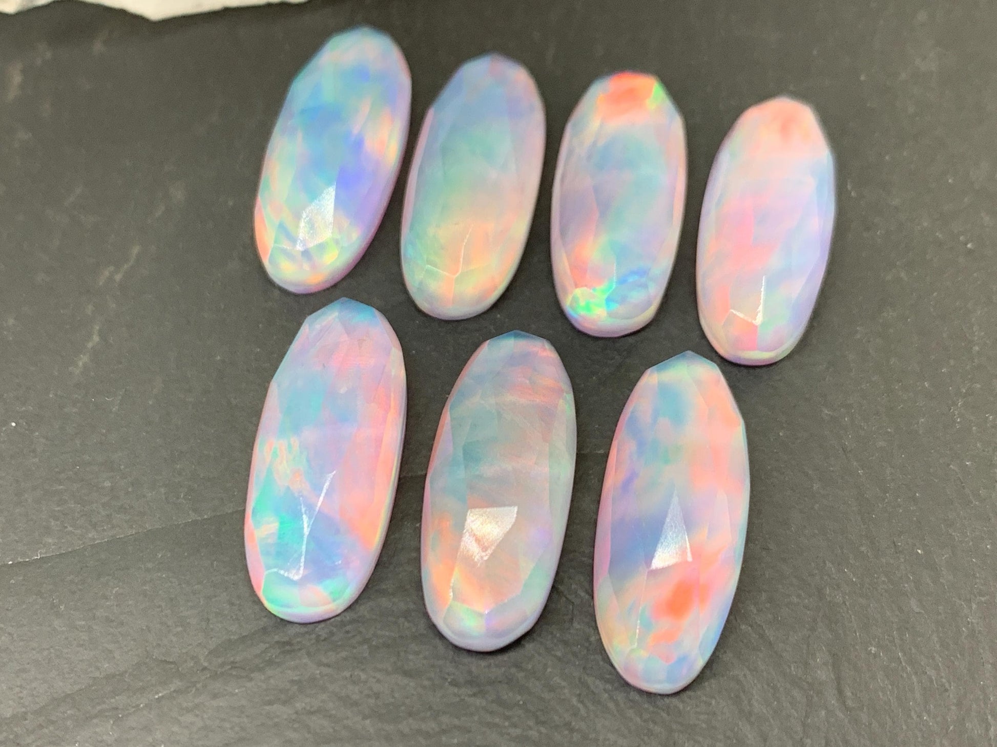 Faceted Aurora Opal oval 10x25mm cabochons - Doublet cabochons