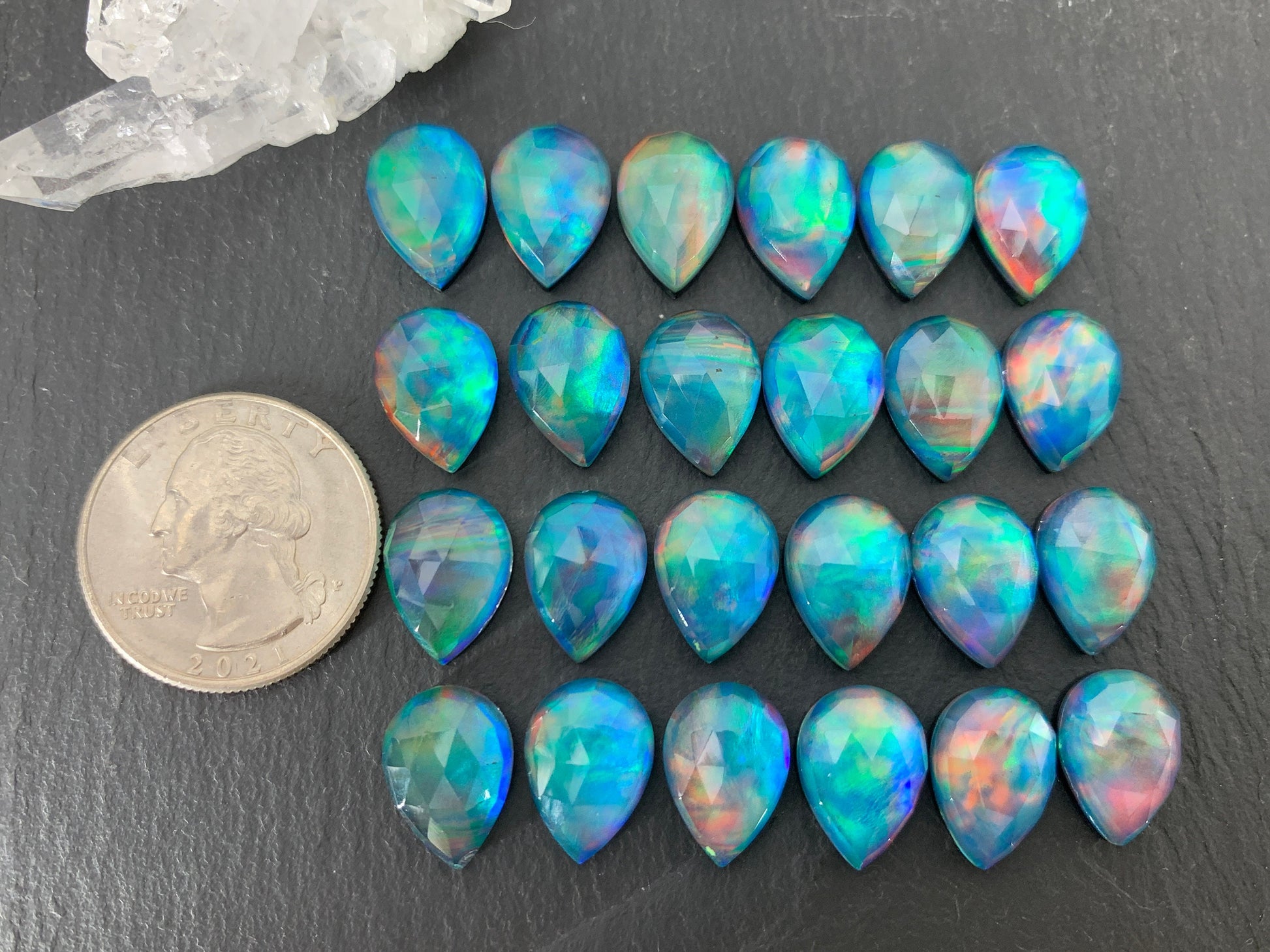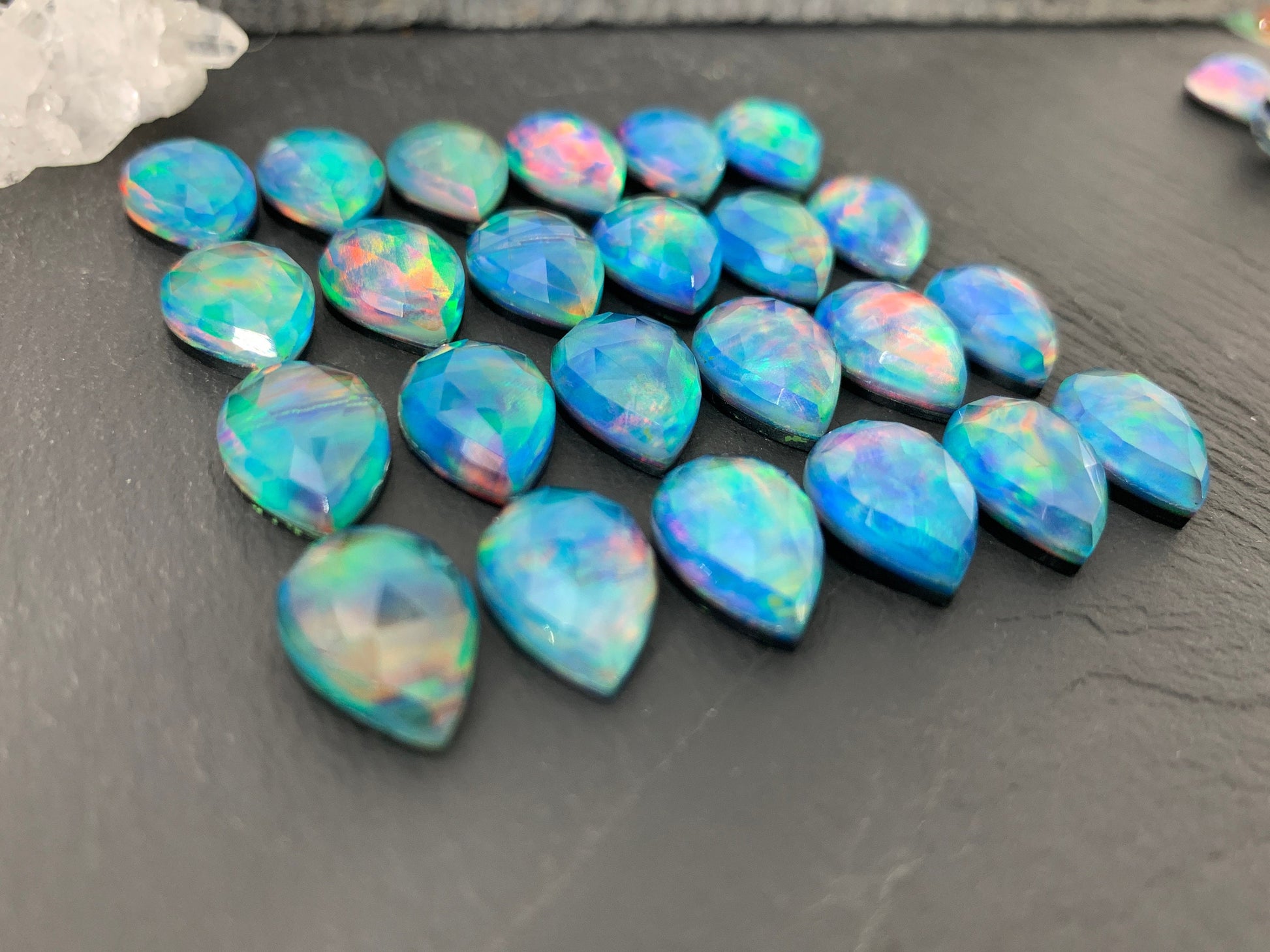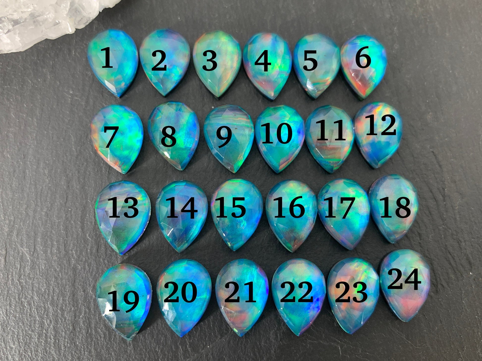 Faceted Aurora Opal Pear 10x14mm Doublet Cabochon - Synthetic Gemstone Jewelry