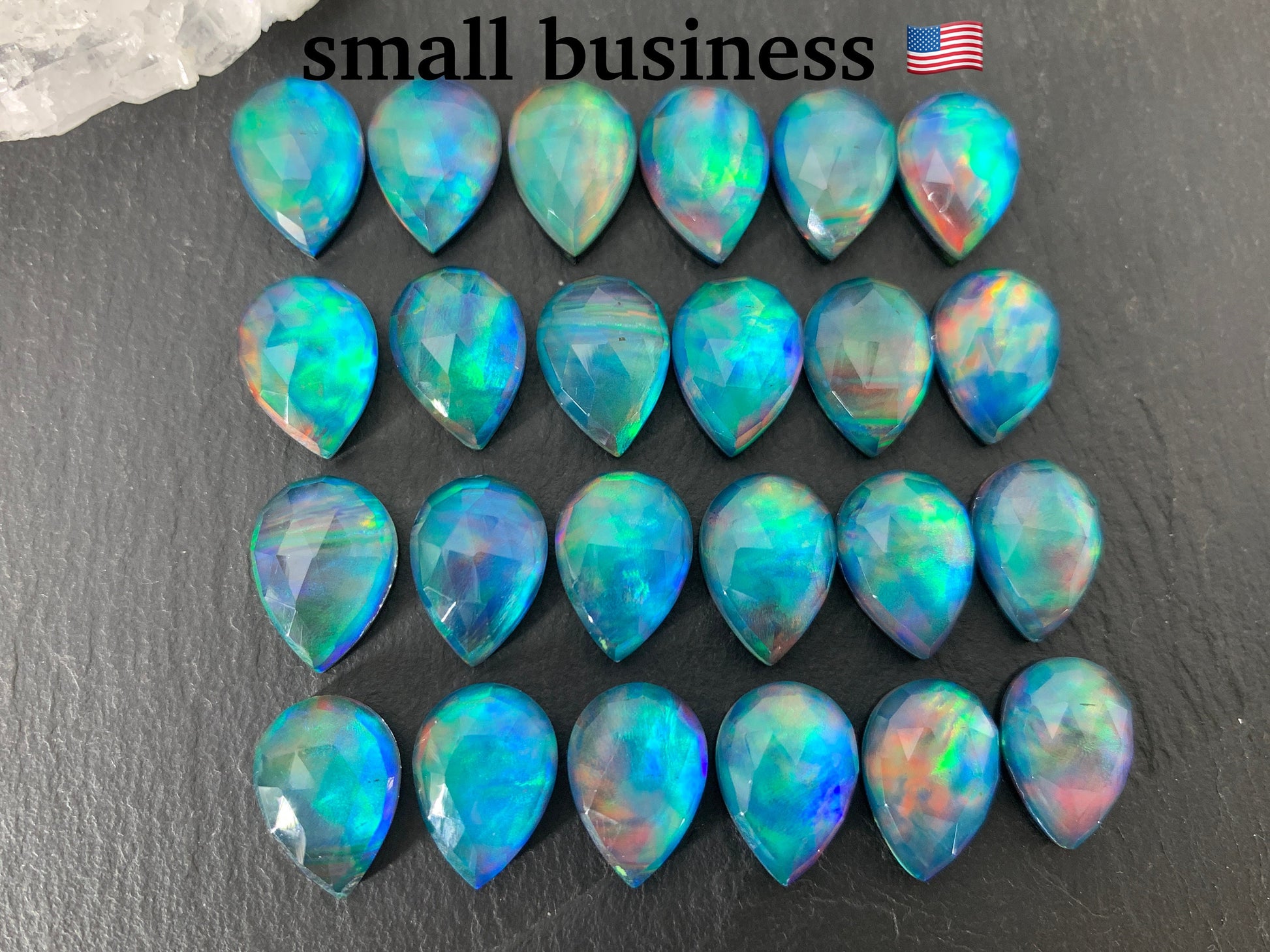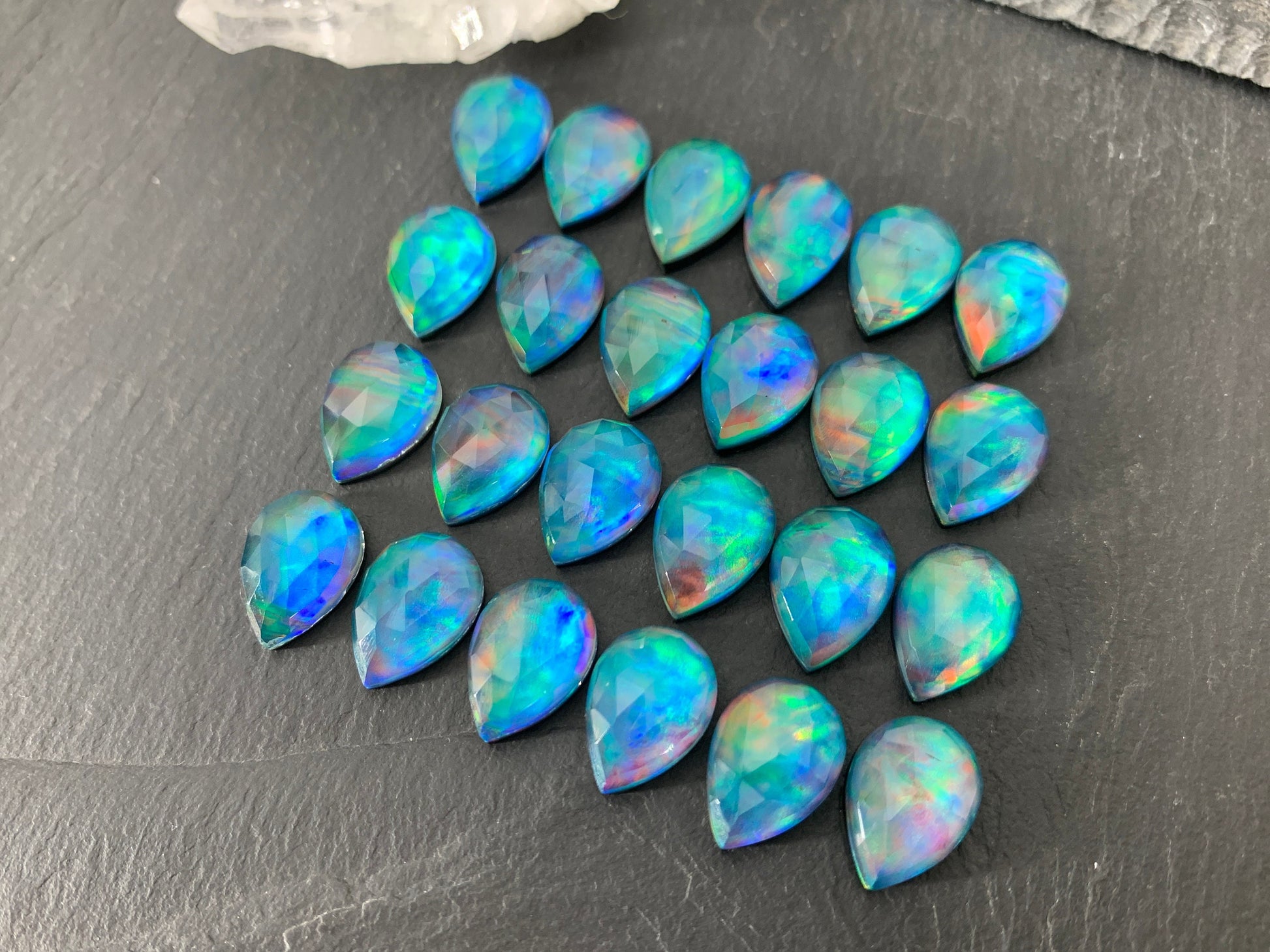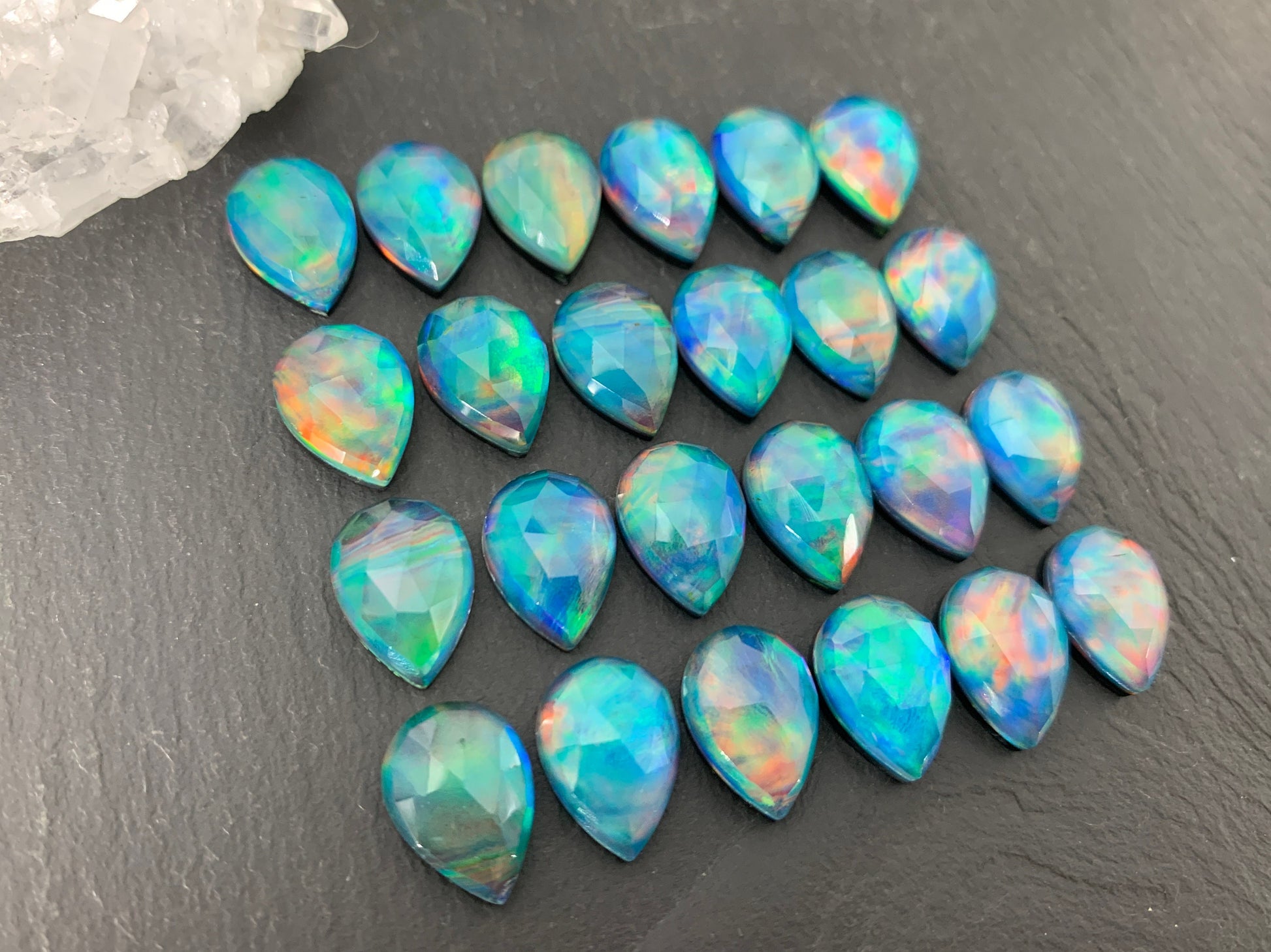 Faceted Aurora Opal Pear 10x14mm Doublet Cabochon - Synthetic Gemstone Jewelry