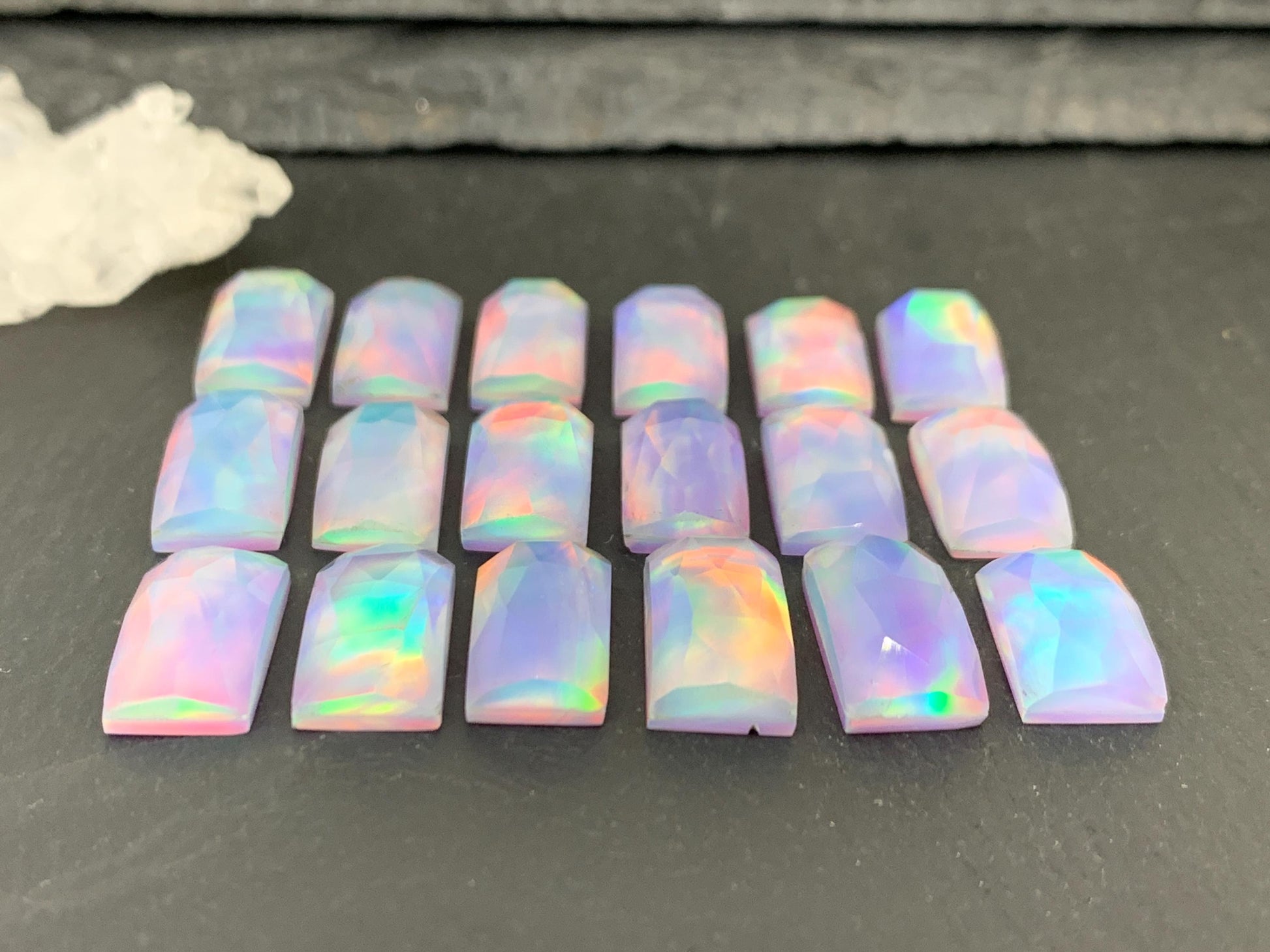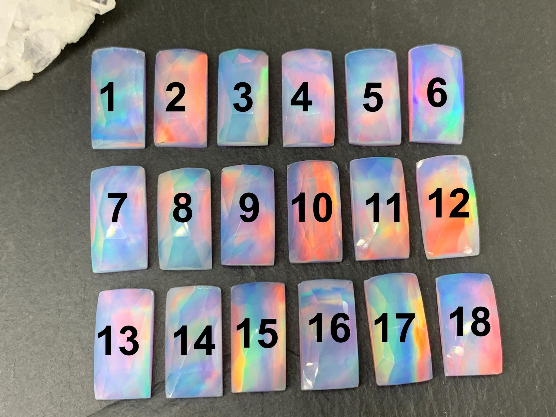 Faceted Aurora Opal rectangle 8x15-16mm cabochon - Doublet cabochon