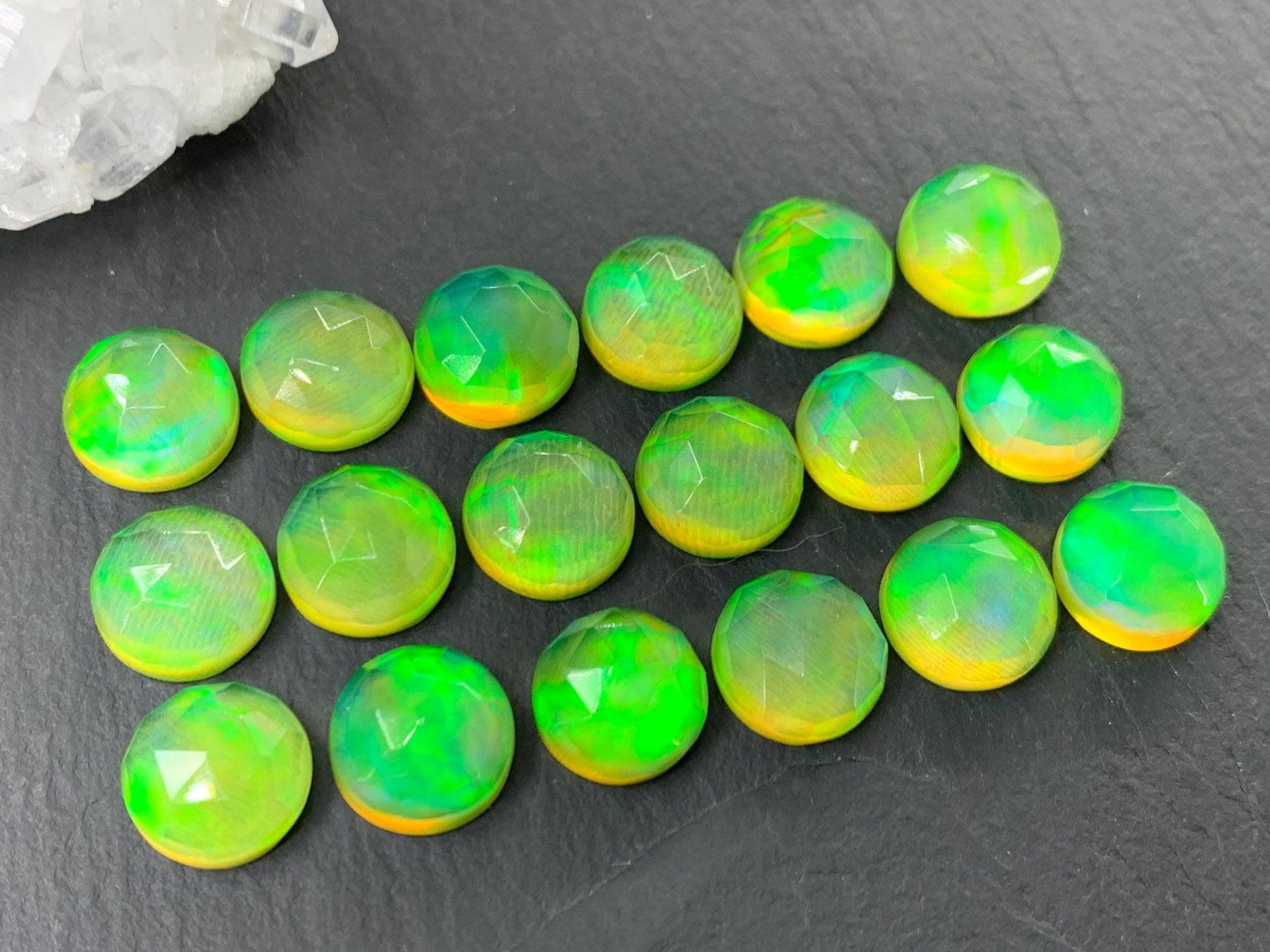 Faceted Aurora Opal round 10mm cabochon - Doublet cabochons