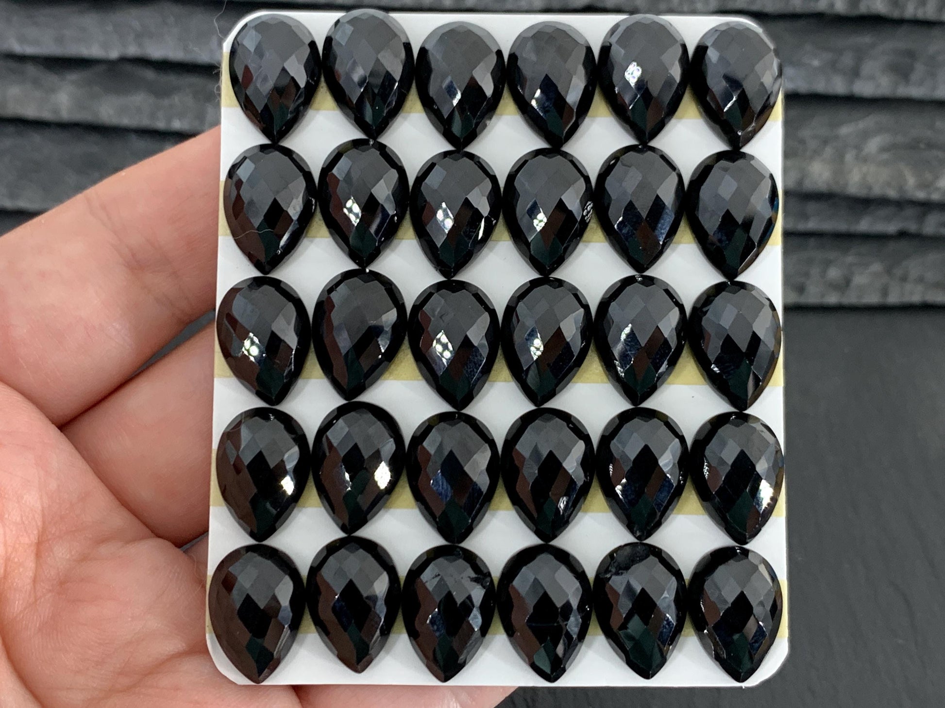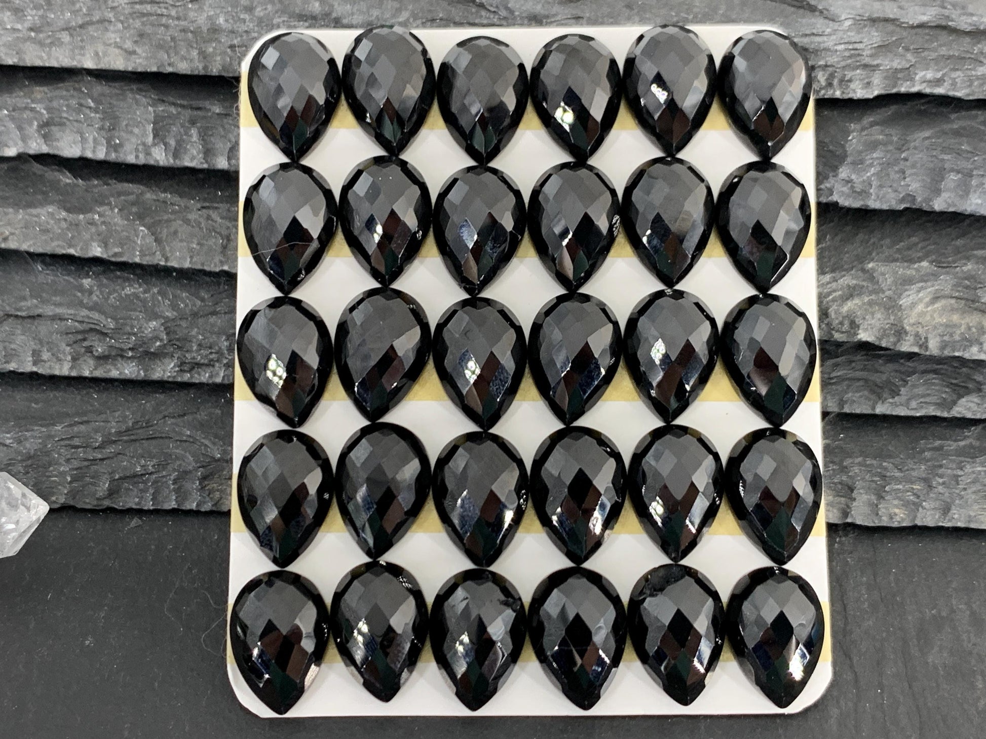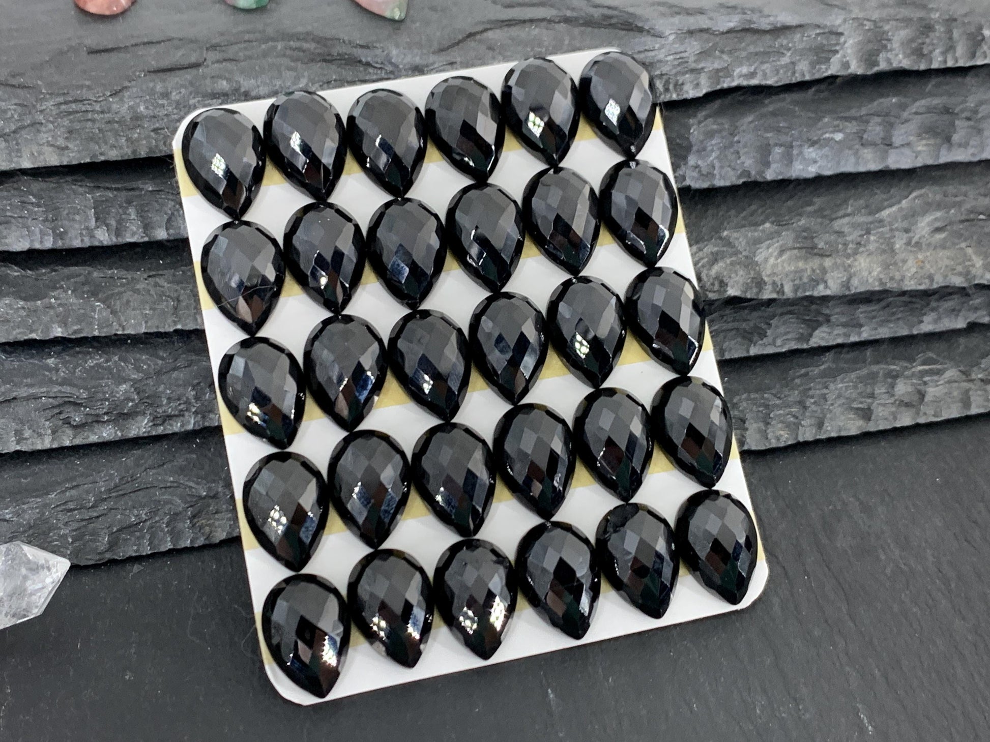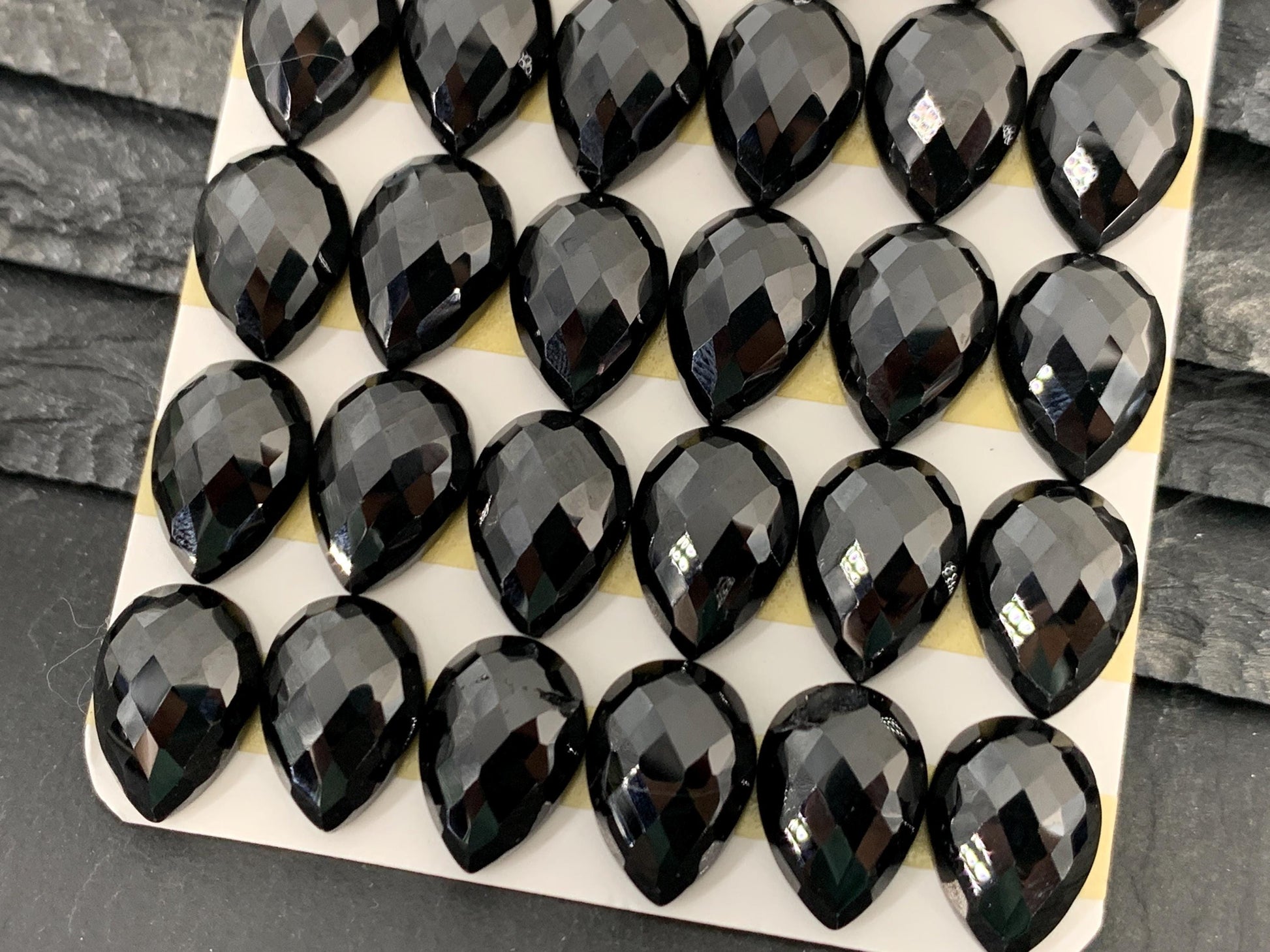 Faceted Black Spinel pear 10x14mm cabochon