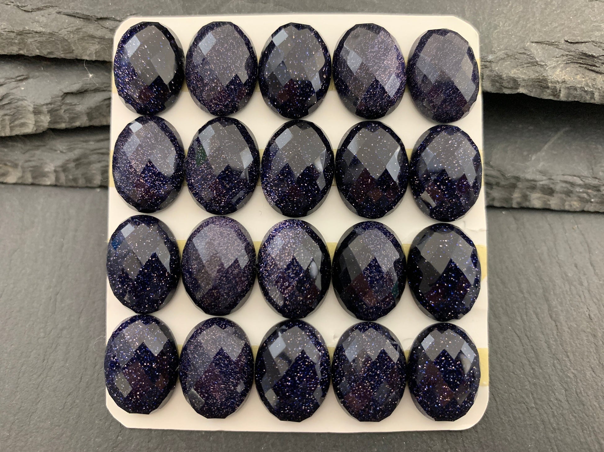 Faceted Blue Gold Sand oval 12x16mm cabochon - Calibrated cabochons