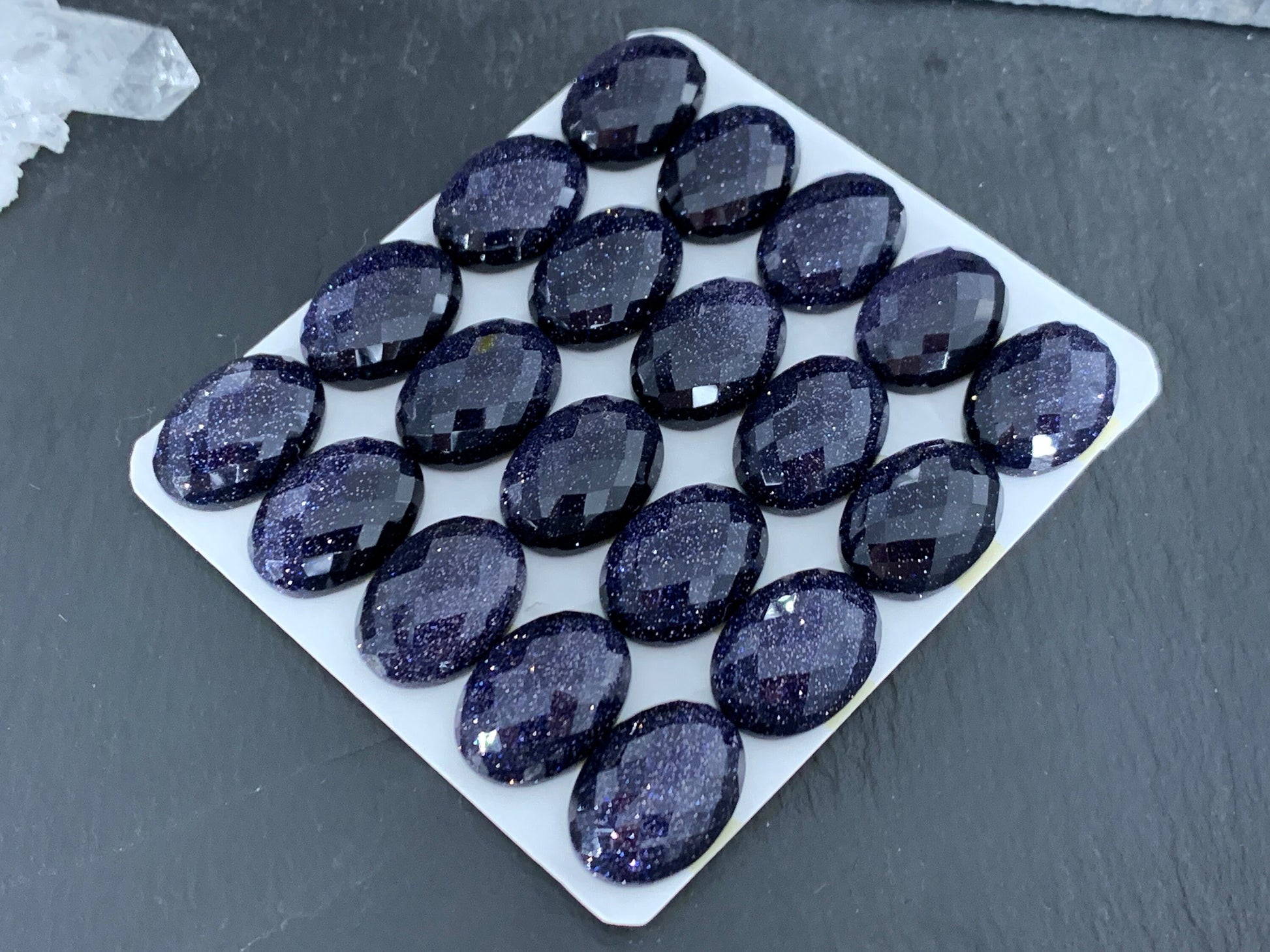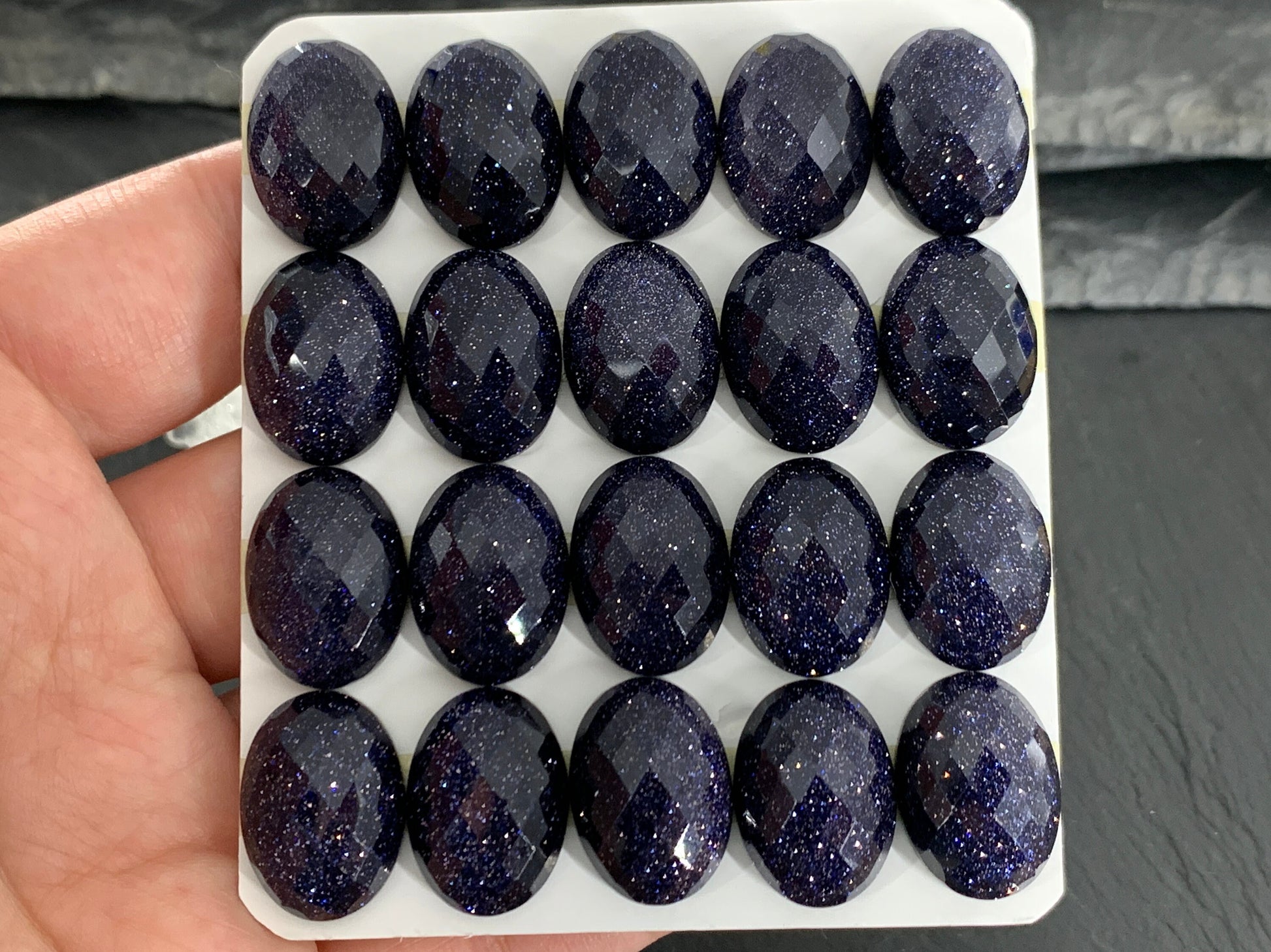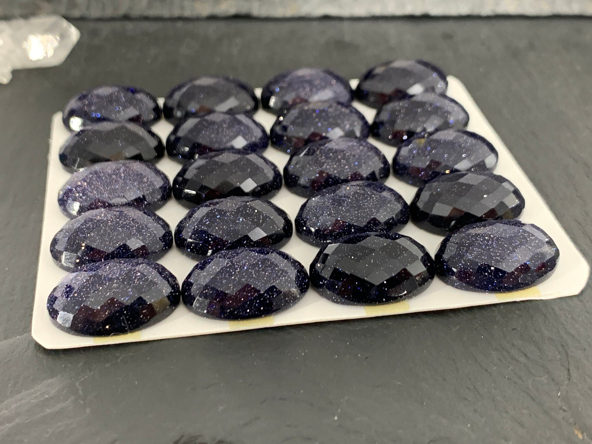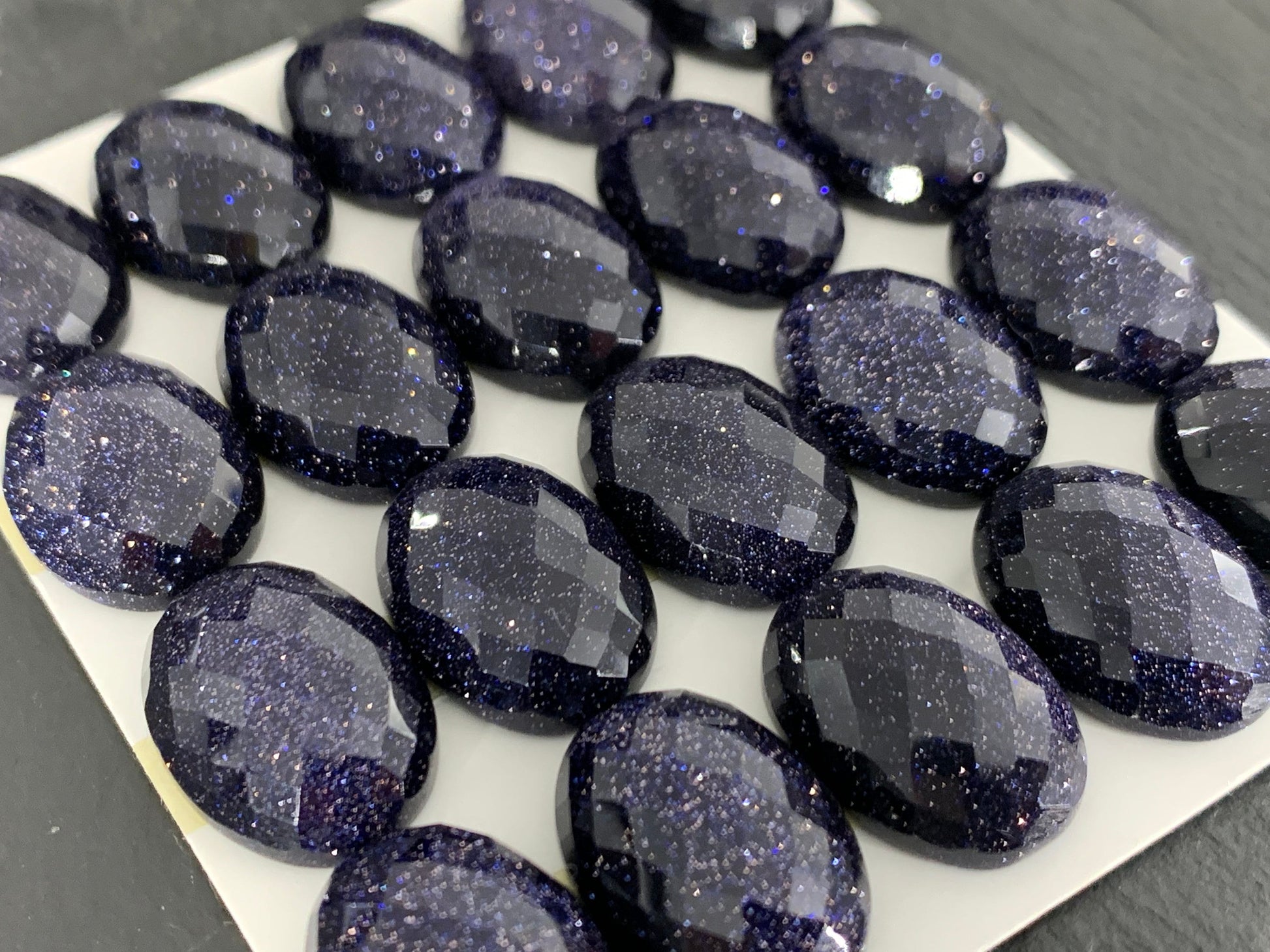 Faceted Blue Gold Sand oval 13x18mm cabochon - Calibrated cabochons