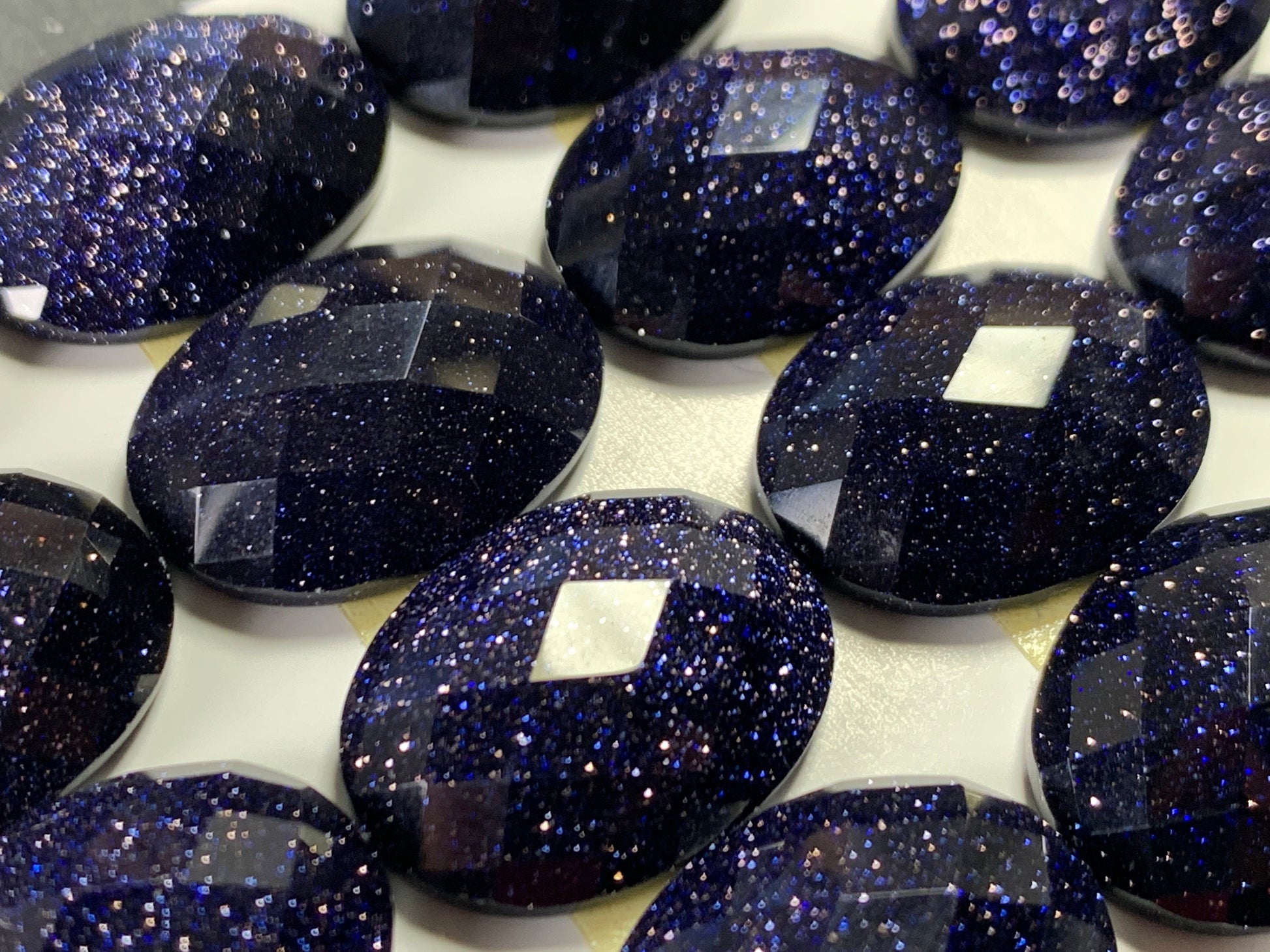 Faceted Blue Gold Sandstone oval 15x20mm cabochon - Calibrated cabochons