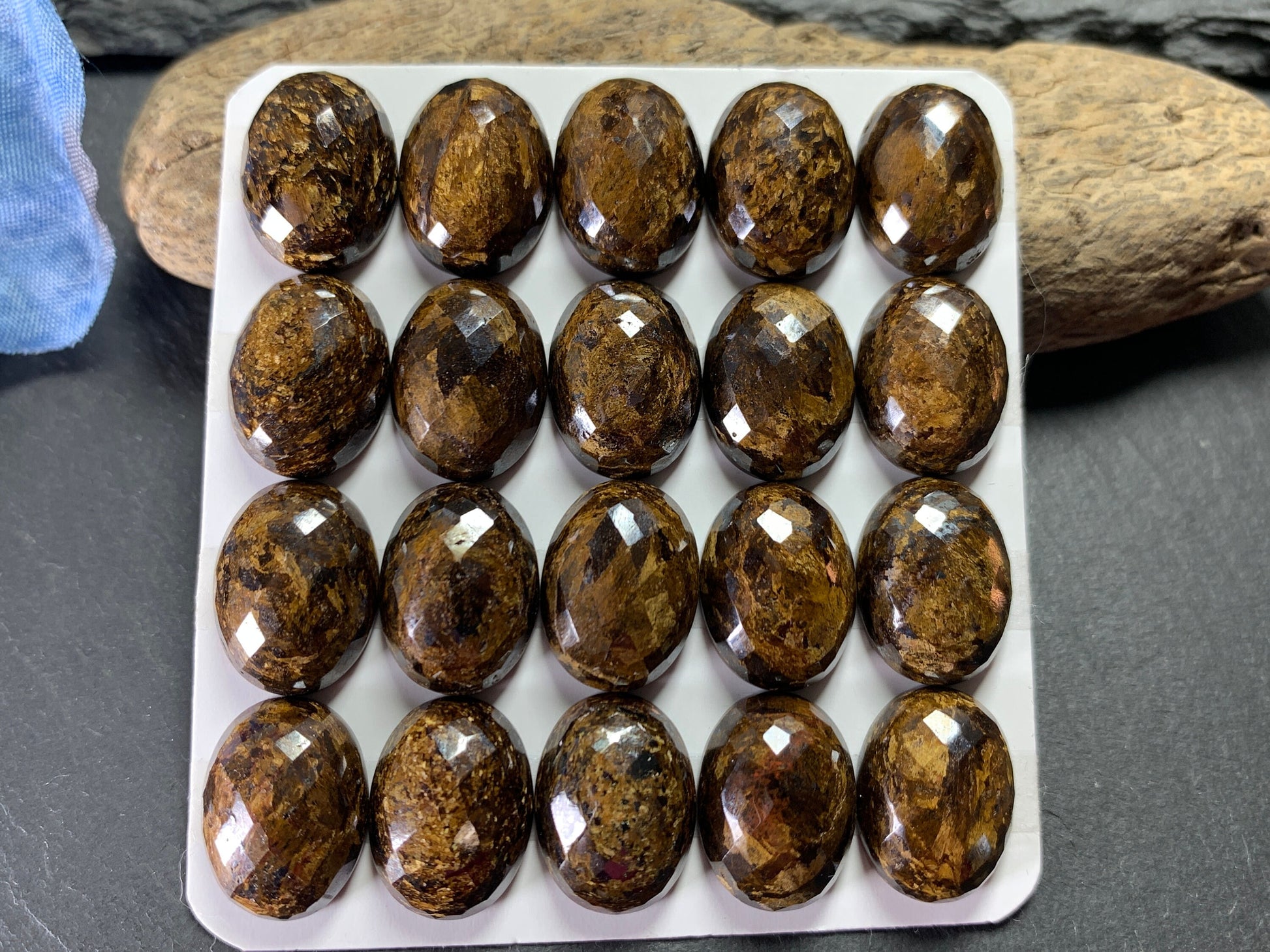 Faceted Bronzite oval 12x16mm cabochon - Calibrated cabochons