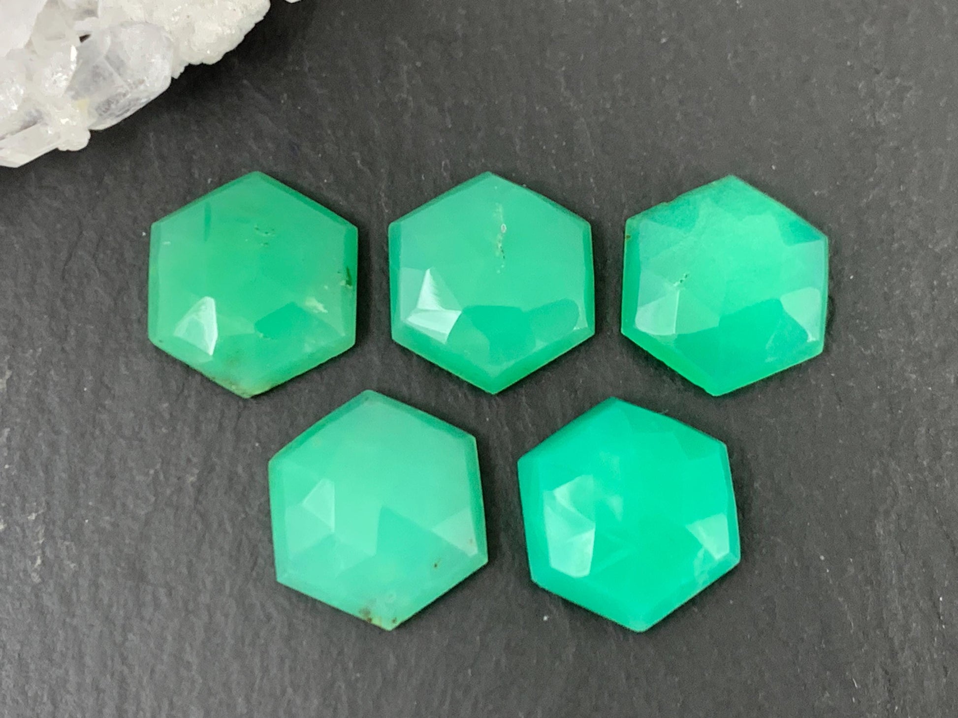 Faceted Chrysoprase Cabochon 12x14mm Hexagon Gemstone – Rose Cut Green Stone