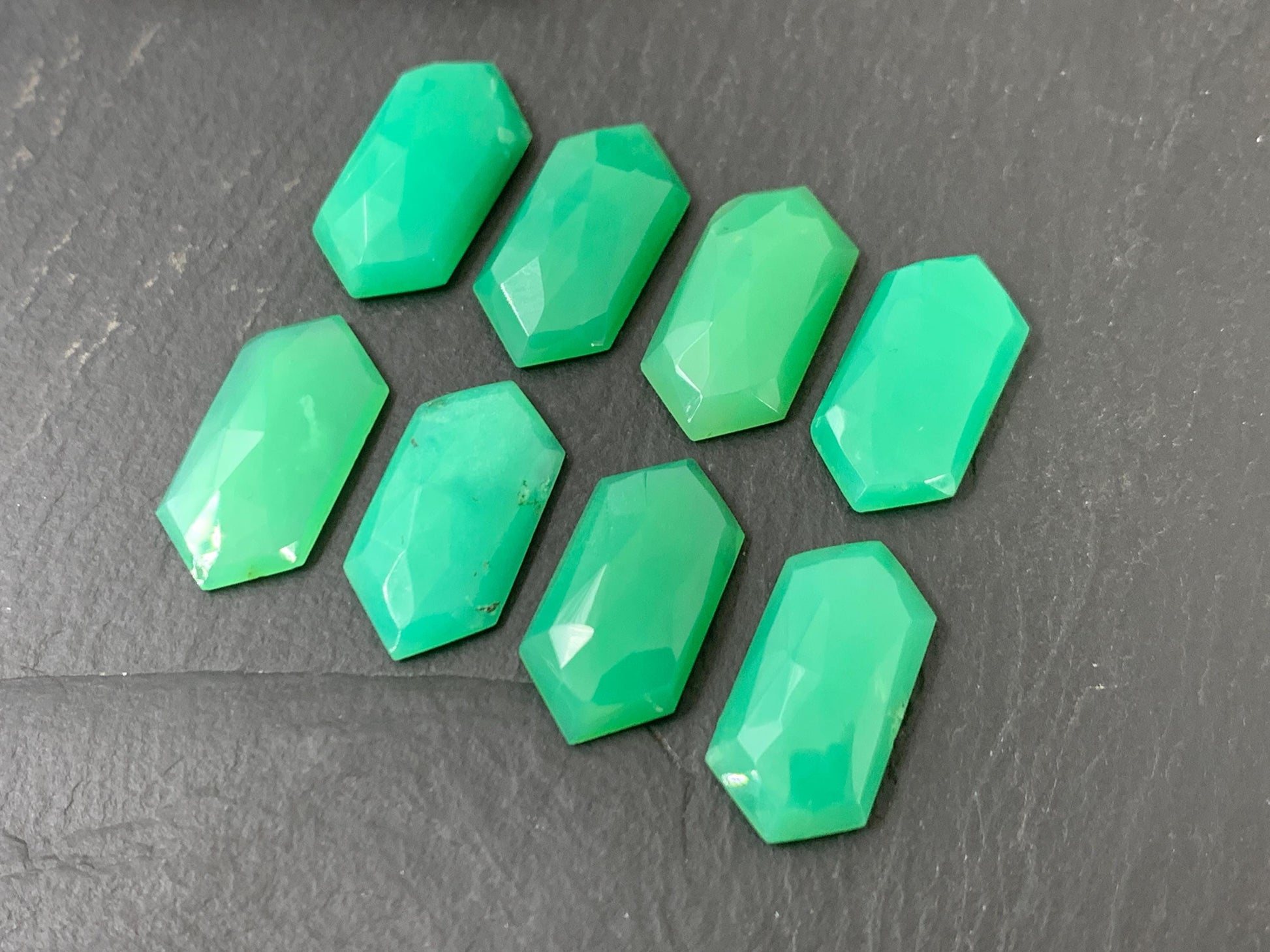 Faceted Chrysoprase Cabochon - Long Hexagon 10x20mm Rose Cut Green Gemstone