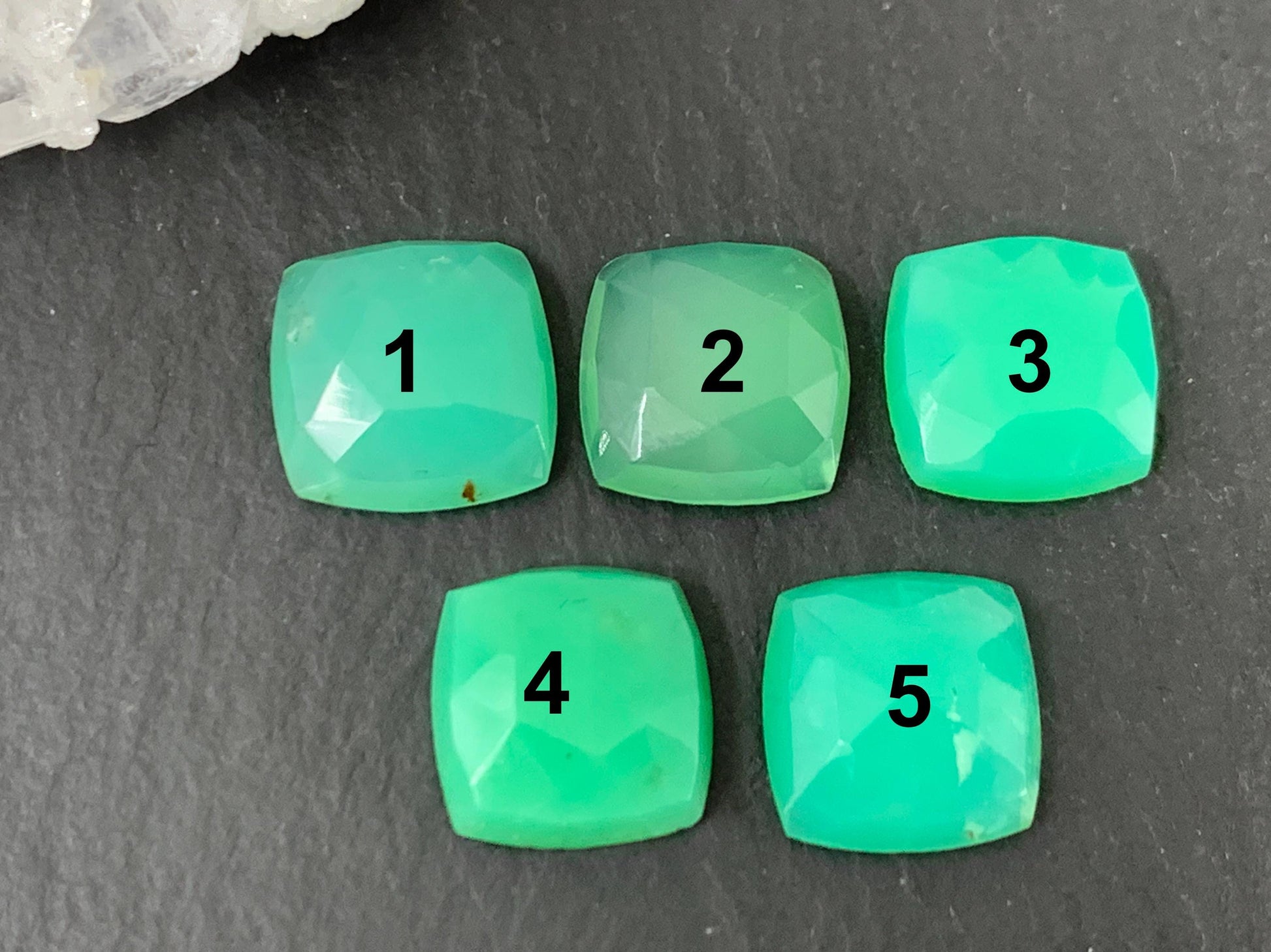 Faceted Chrysoprase Cabochon - Natural Green Gemstone 10mm Square Faceted Top