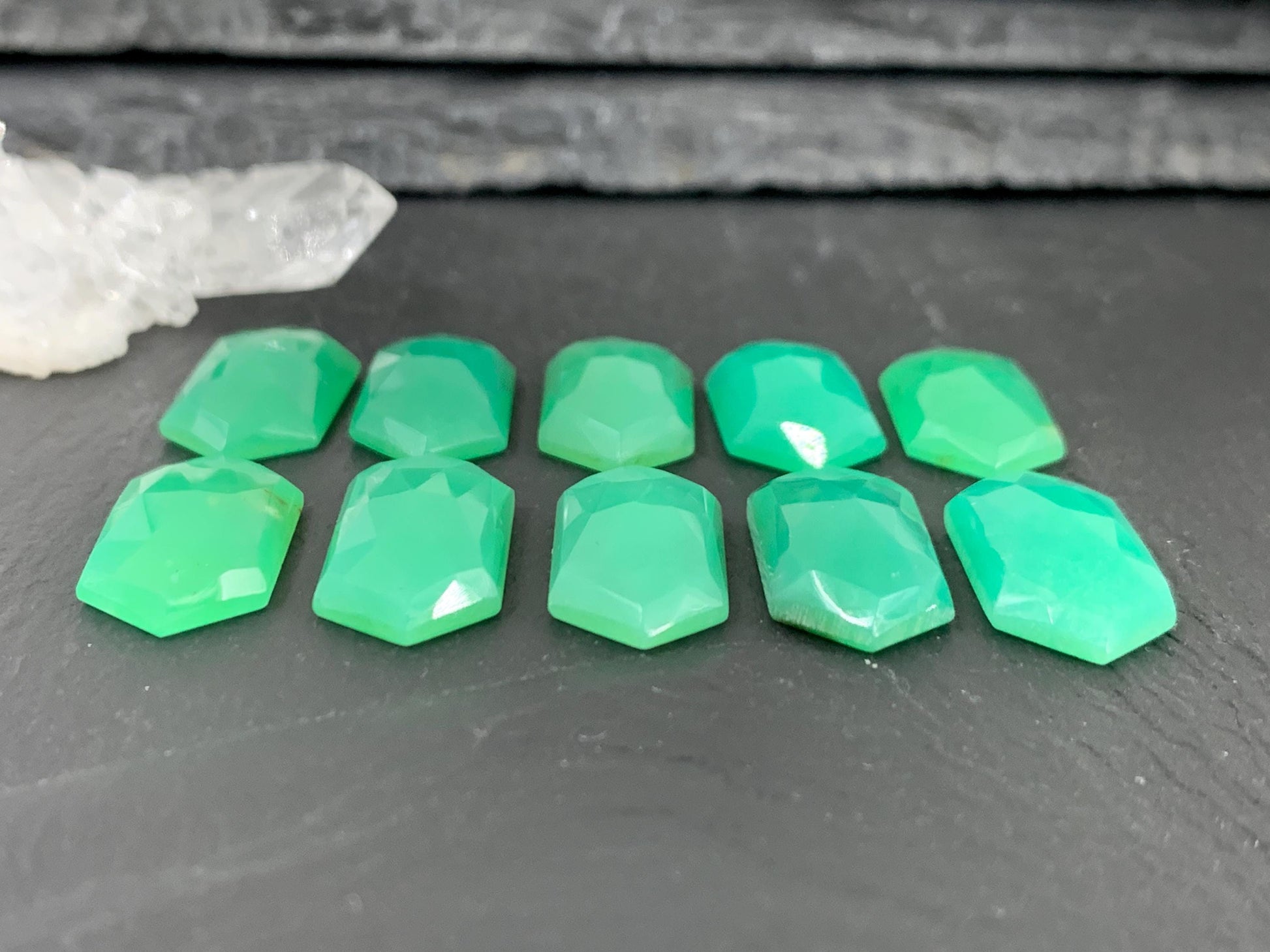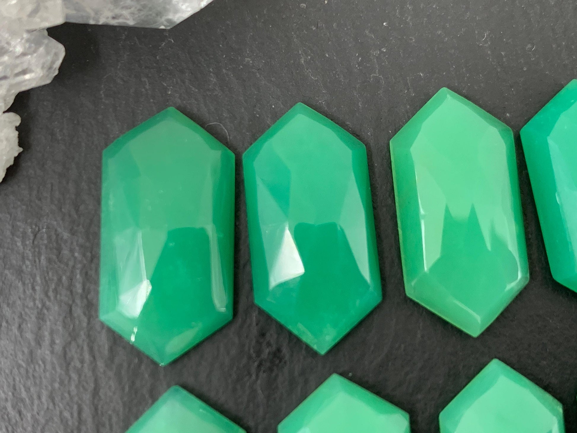 Faceted Chrysoprase hexagon 10x20mm cabochon