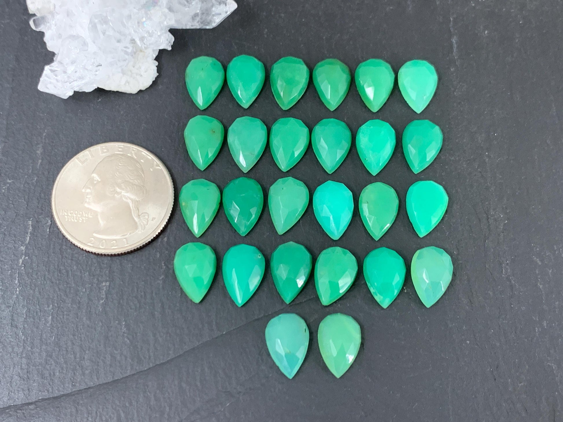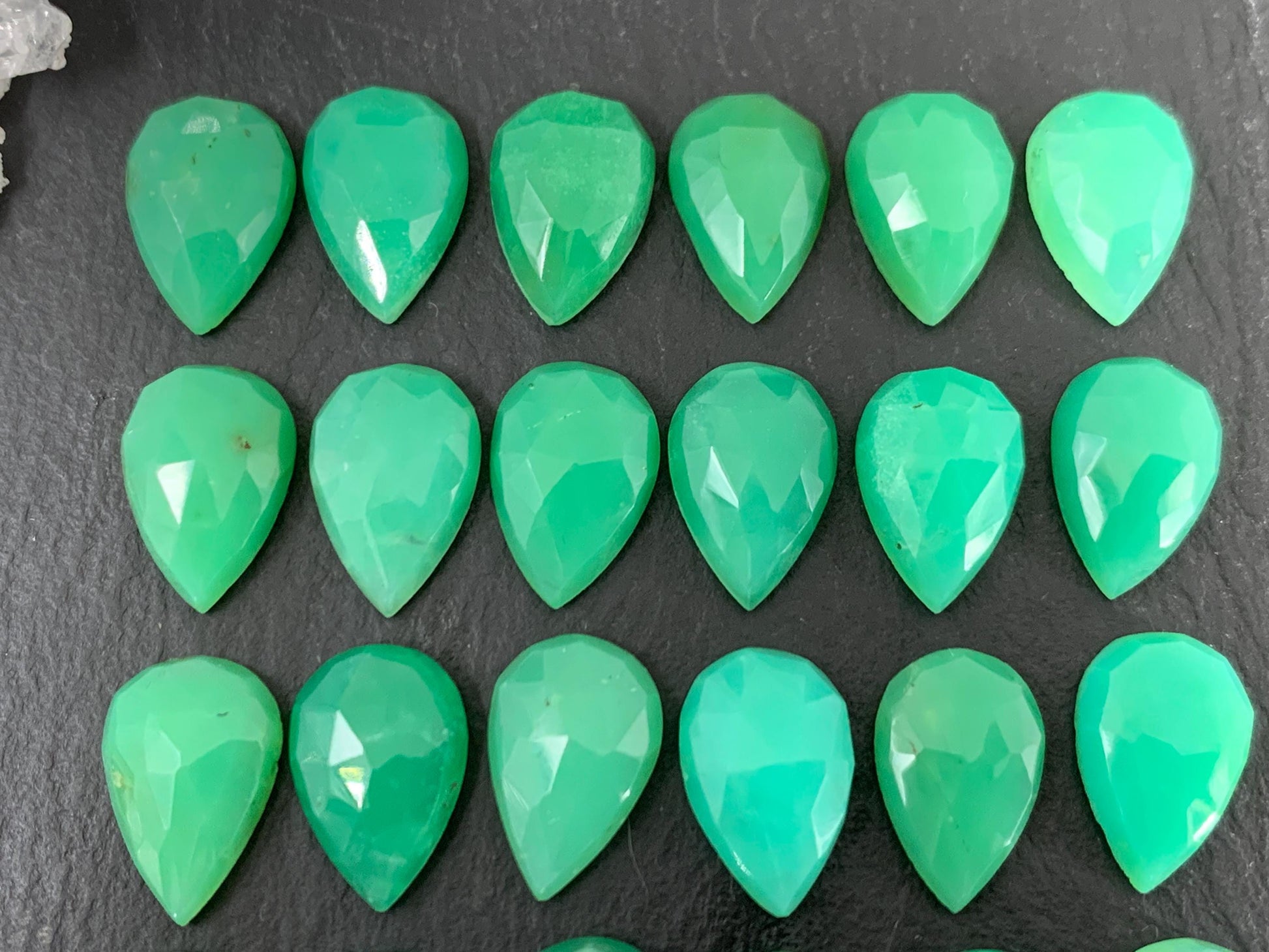 Faceted Chrysoprase pear 8x12mm cabochon