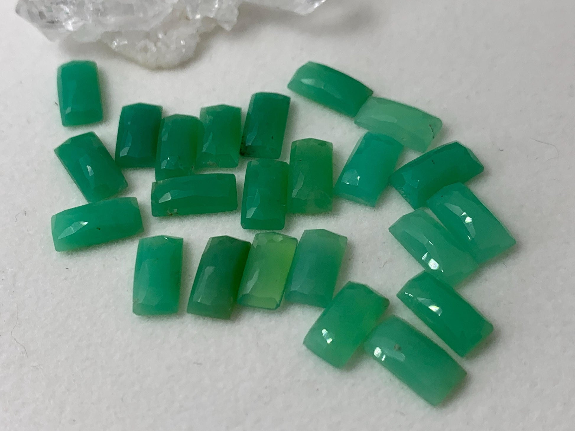 Faceted Chrysoprase rectangle 5x10mm cabochon