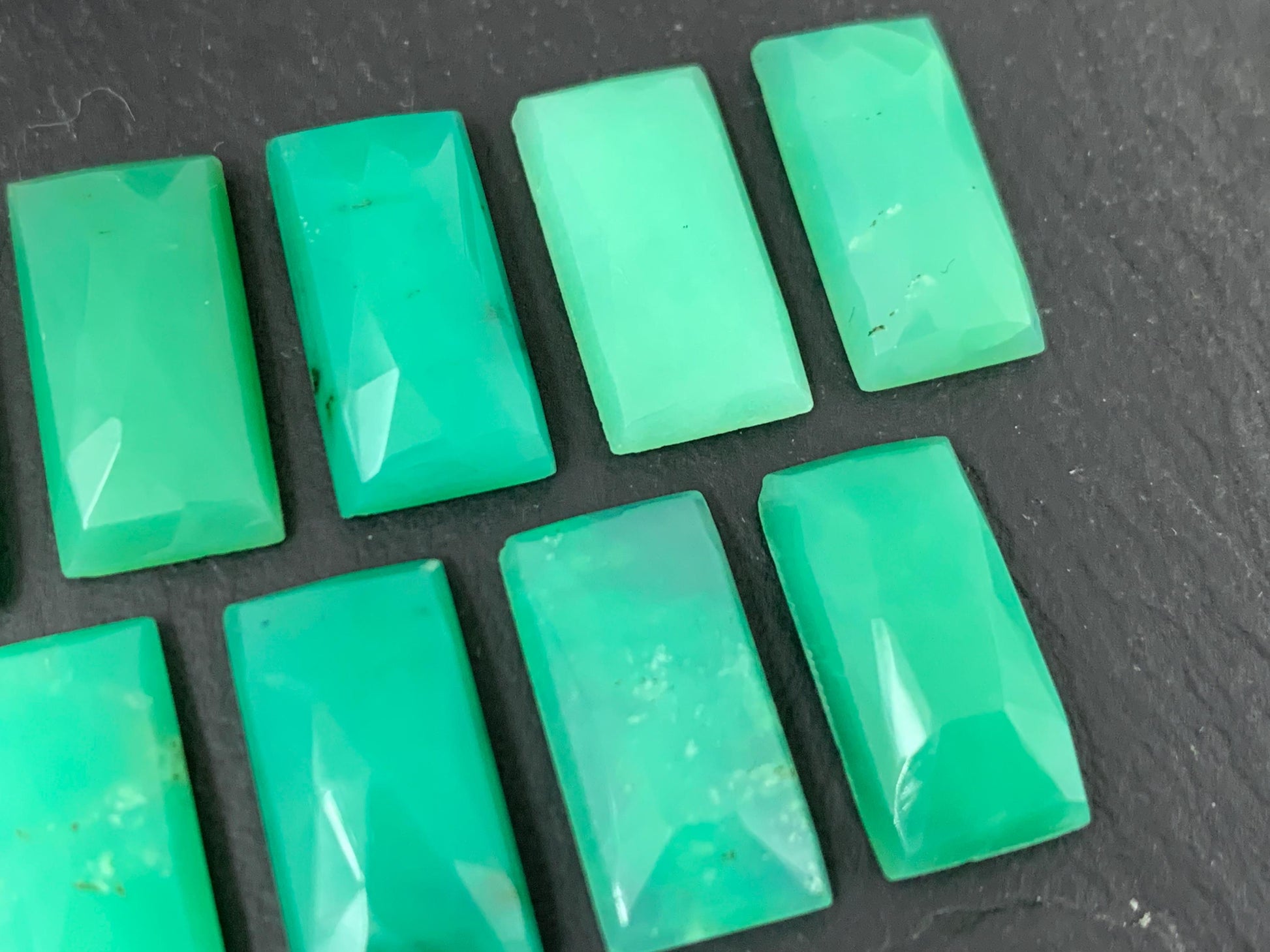 Faceted Chrysoprase rectangle 8x16mm cabochon
