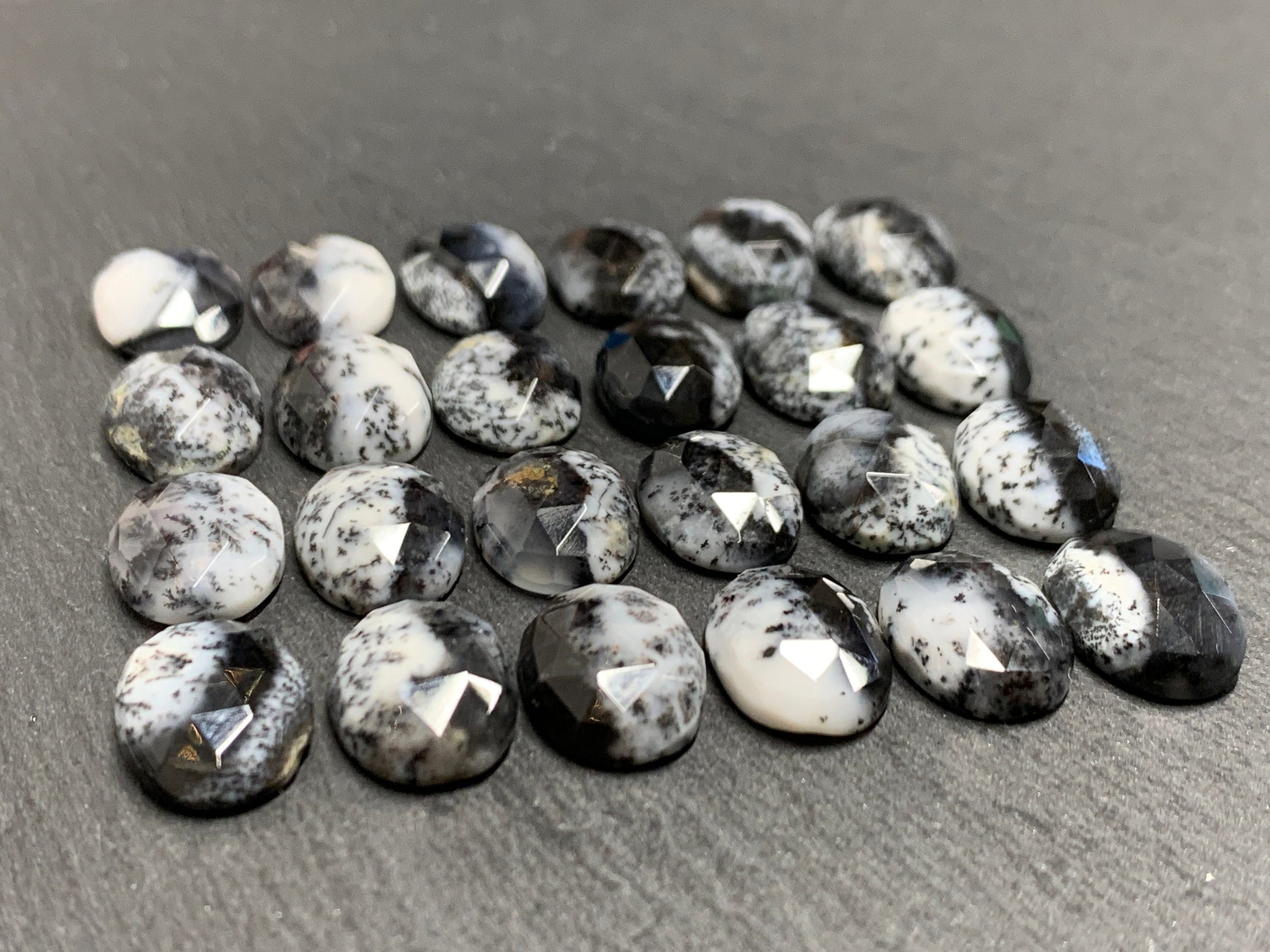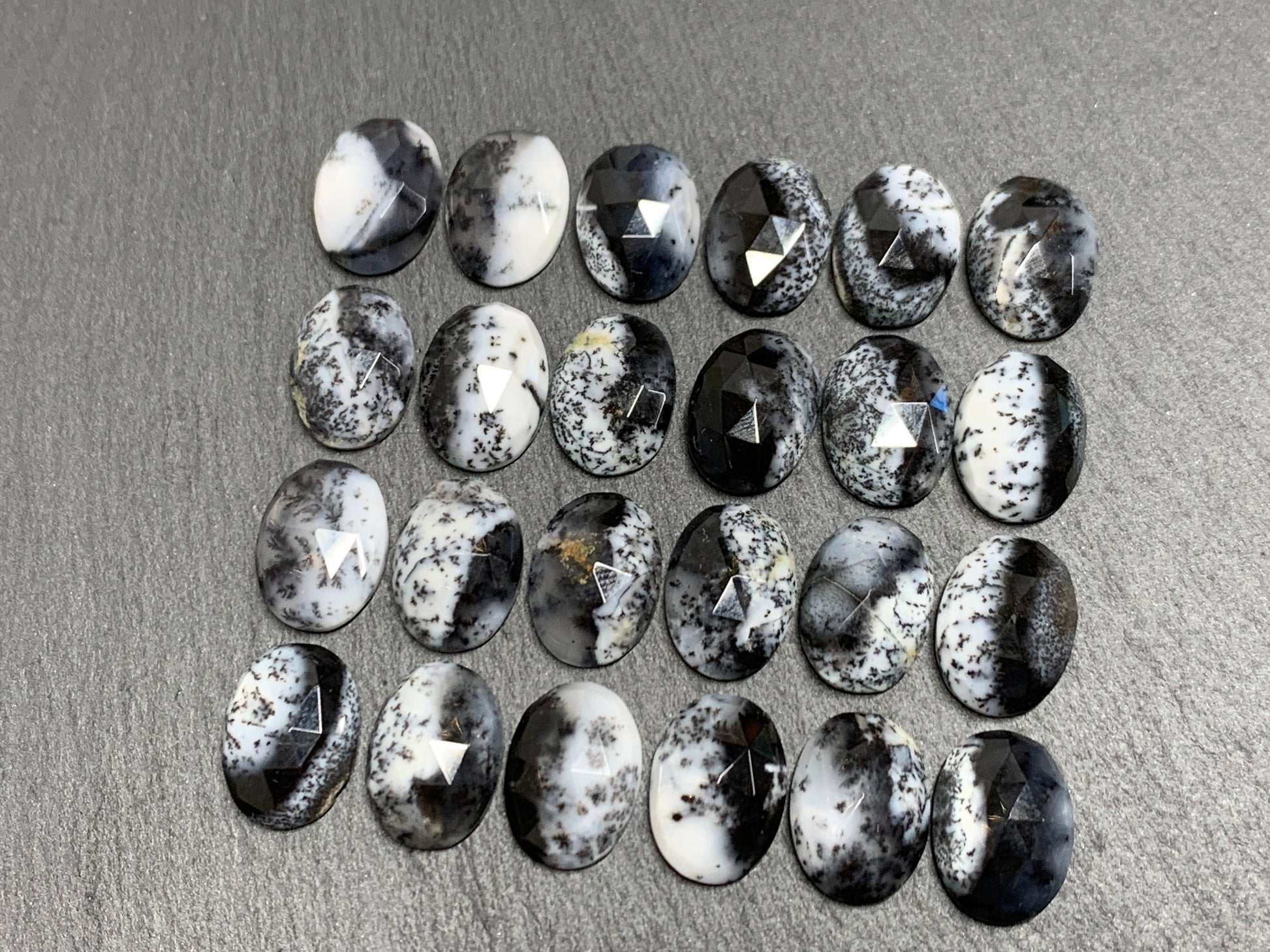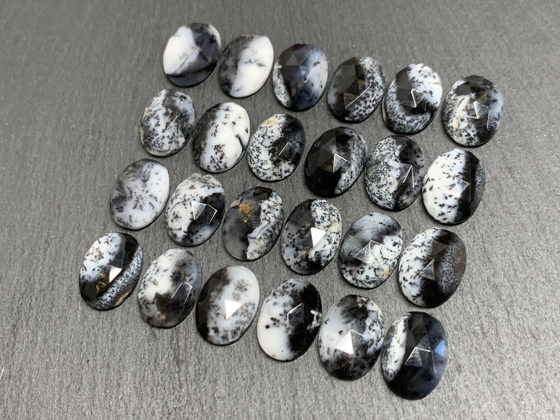 Faceted Dendrite Opal oval 10x14mm cabochon