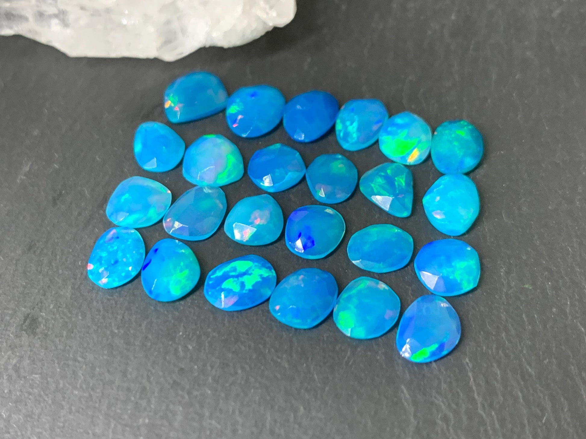 Faceted Blue Ethiopian Opal 7-9mm long cabochon