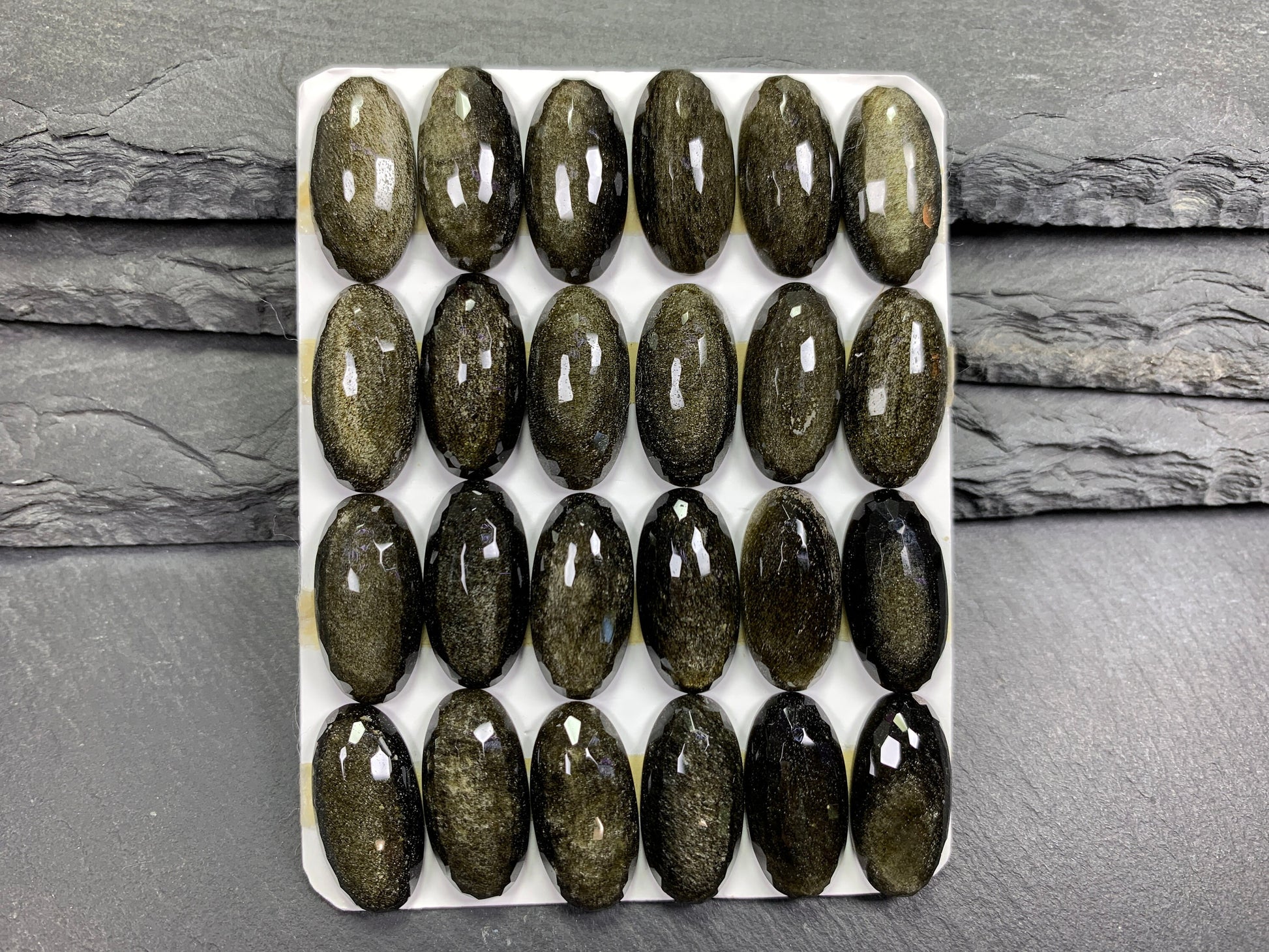 Faceted Gold Obsidian oval 10x20mm cabochon - Calibrated cabochons