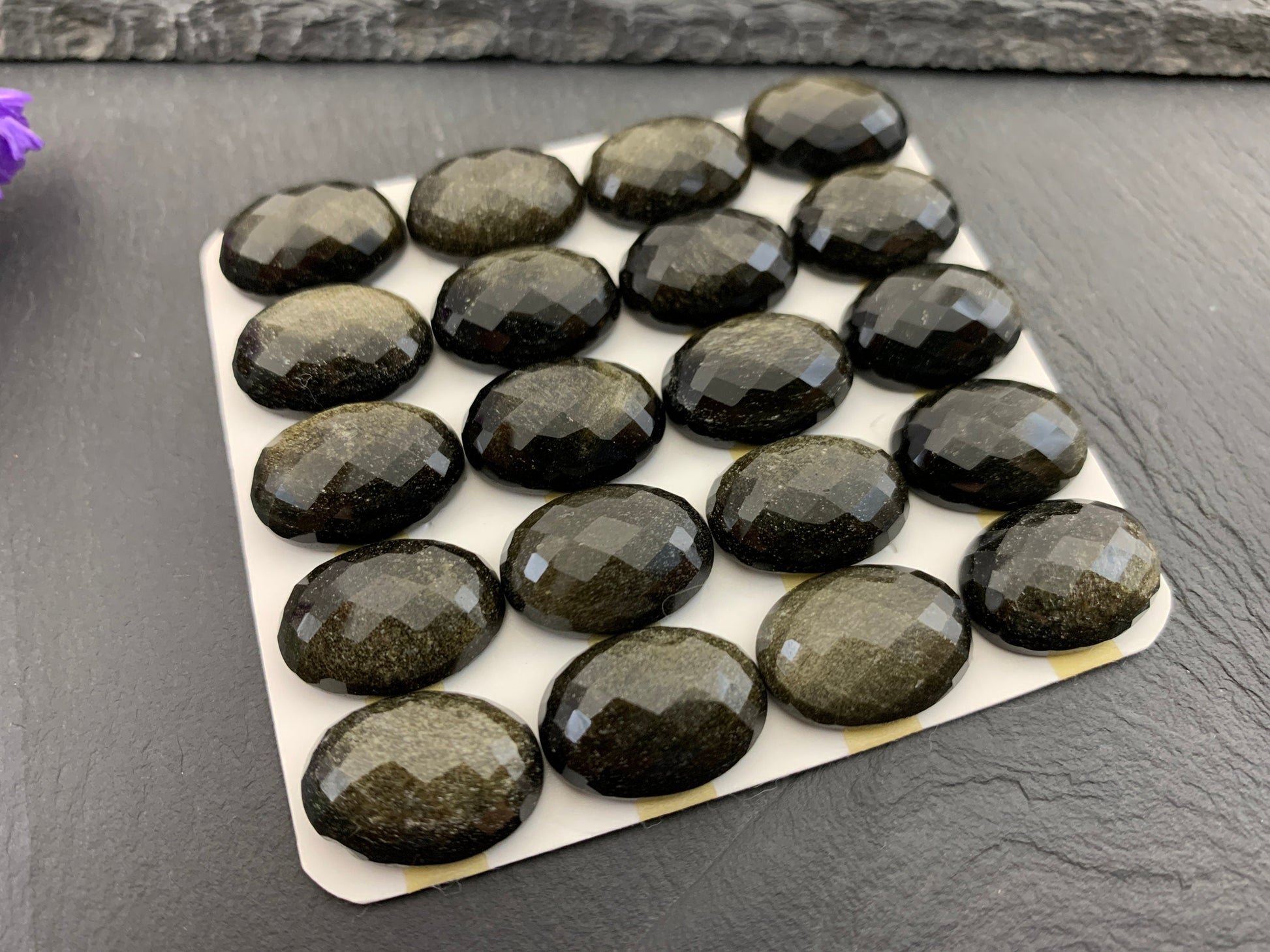 Faceted Gold Obsidian oval 13x18mm cabochon - Calibrated cabochons