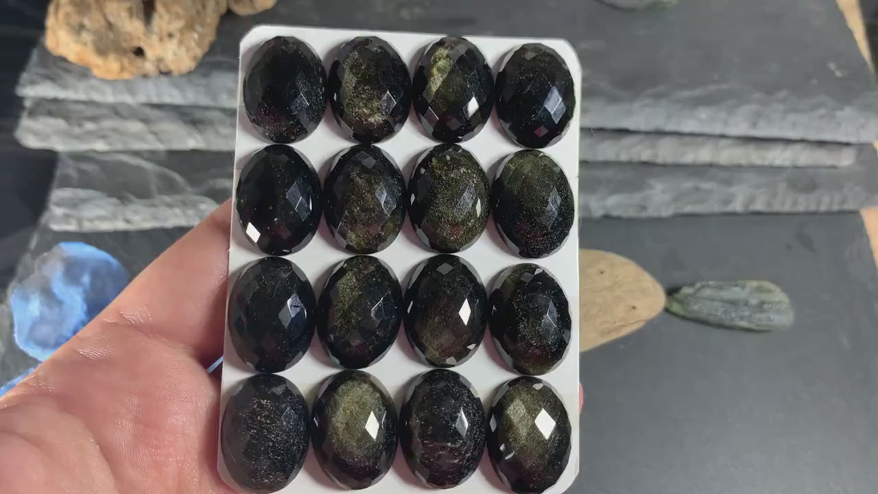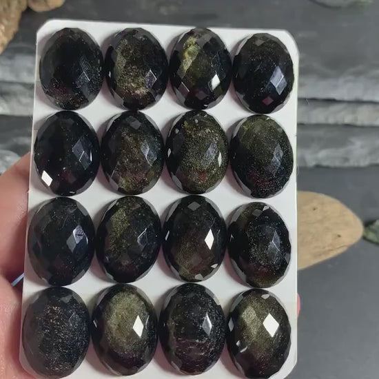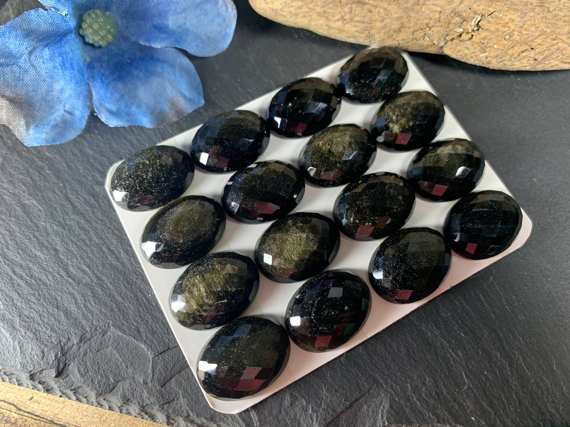 Faceted Gold Obsidian oval 15x20mm Cabochon - Calibrated cabochons