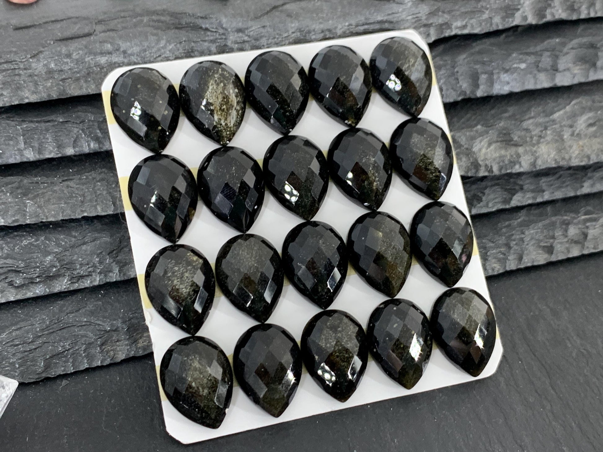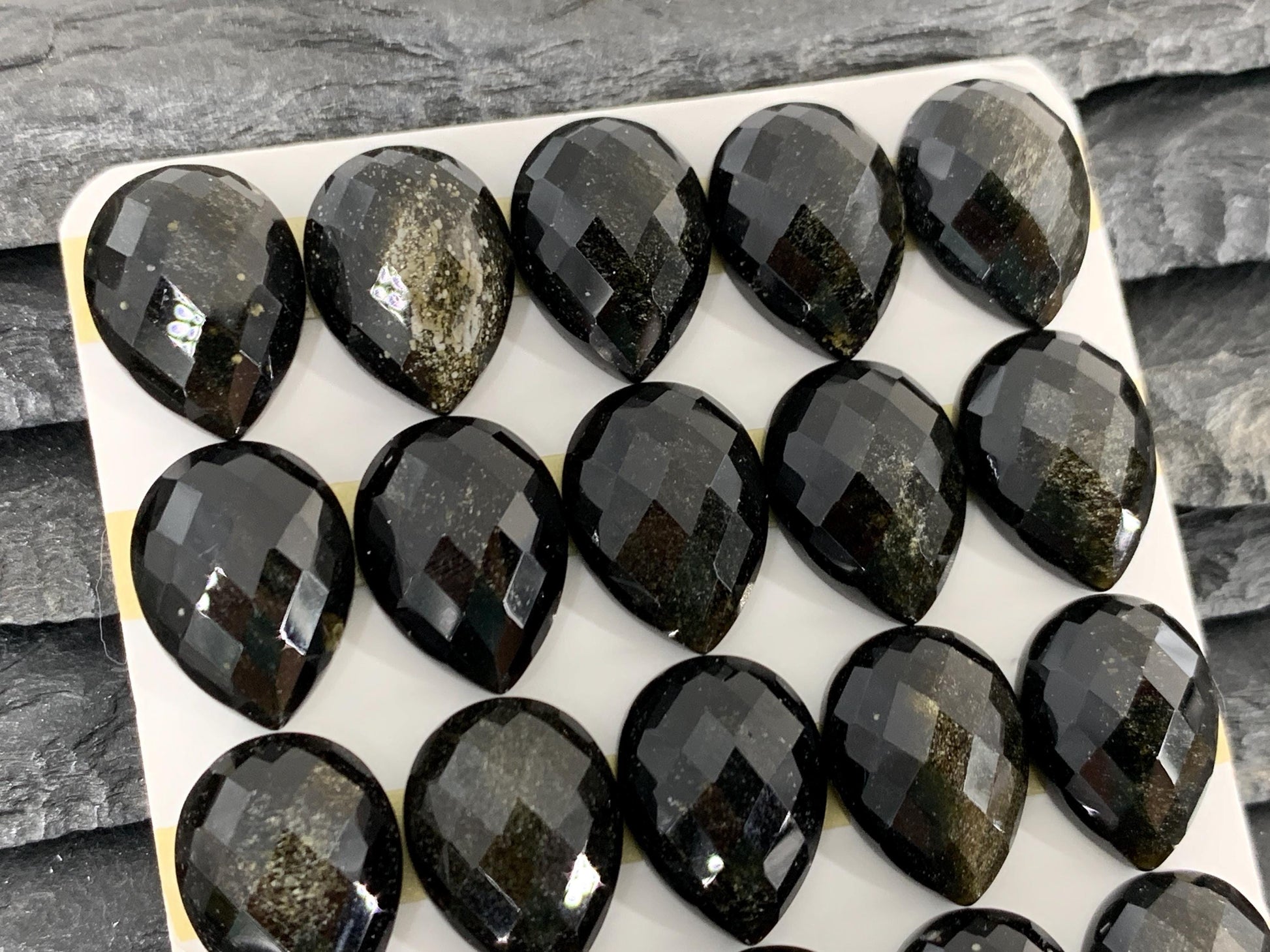 Faceted Gold Obsidian pear 12x16mm cabochon