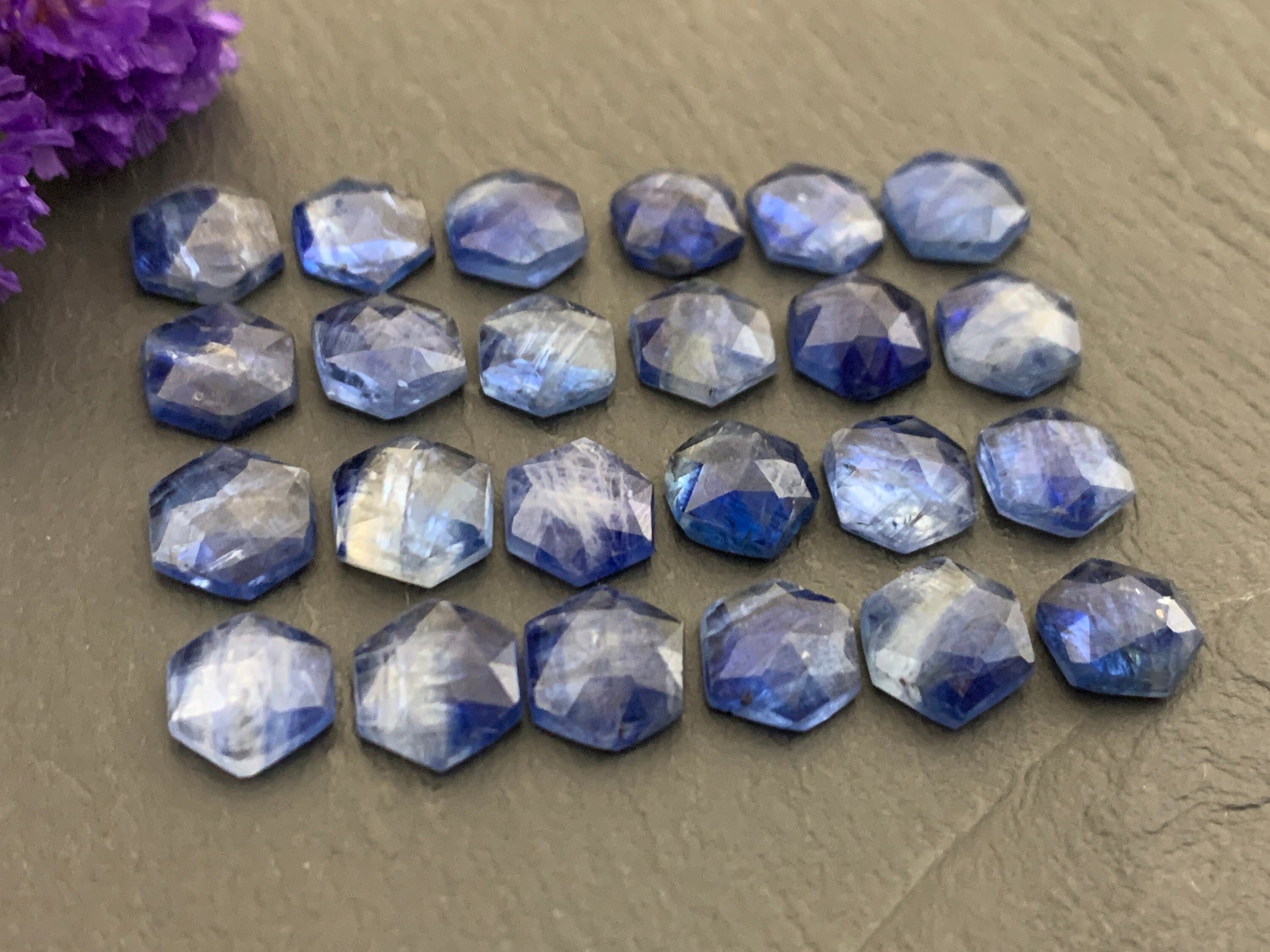Faceted Kyanite Hexagon 8mm Cabochon - Natural Blue Gemstone Cut