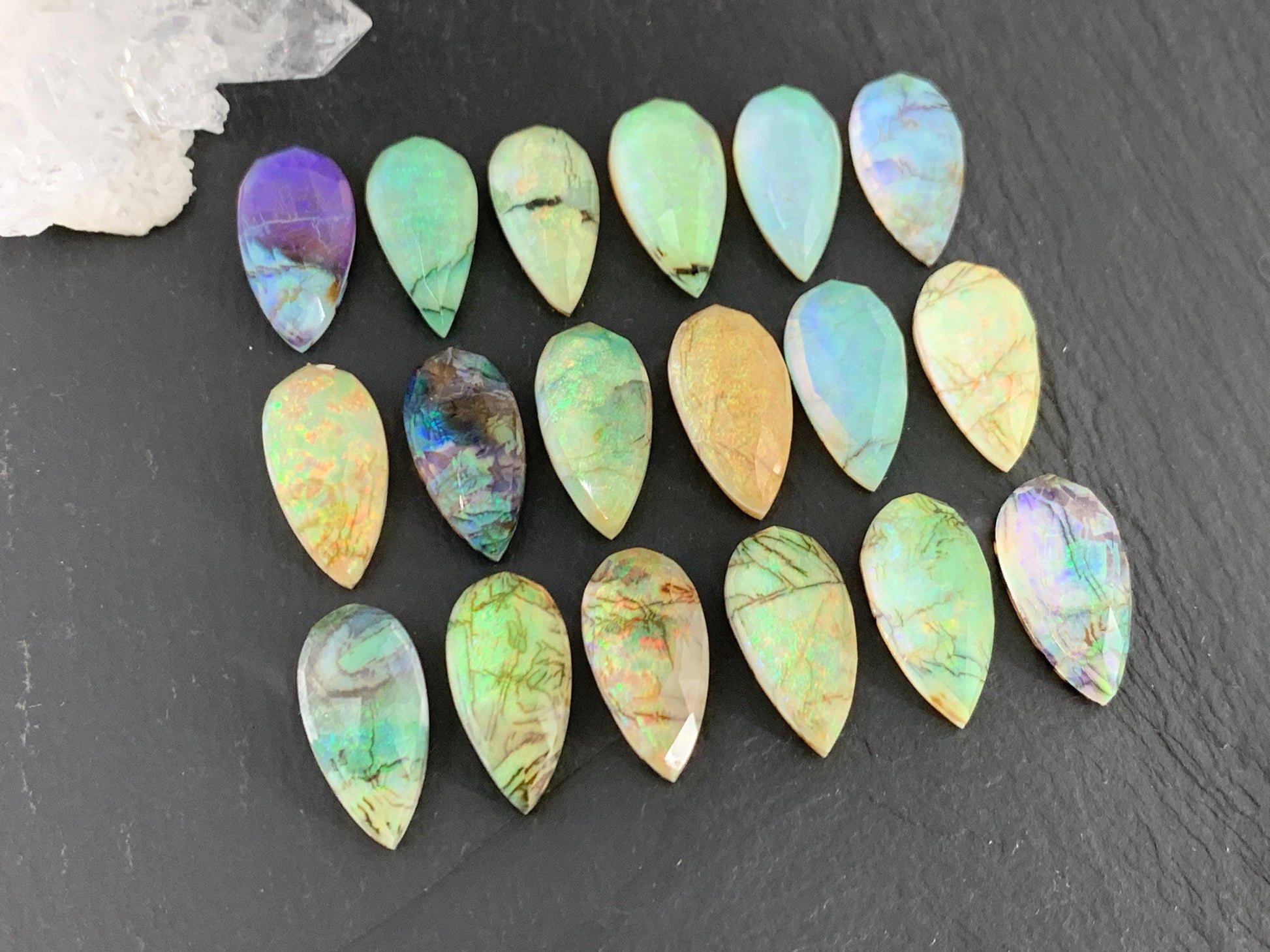 Faceted Monarch Opal pear 10x20mm cabochons - Doublet cabochons