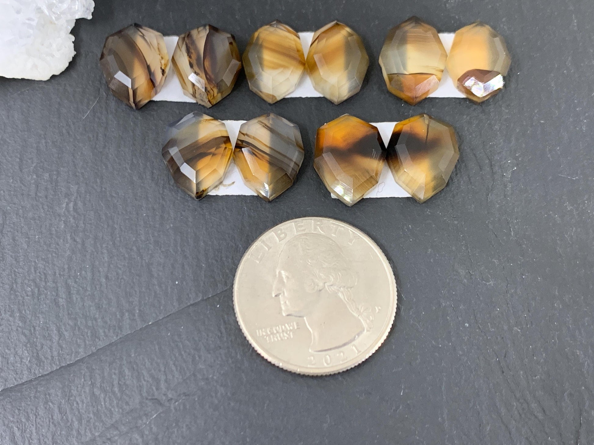 Faceted Montana Agate 13-14mm long cabochon - Buy by pair