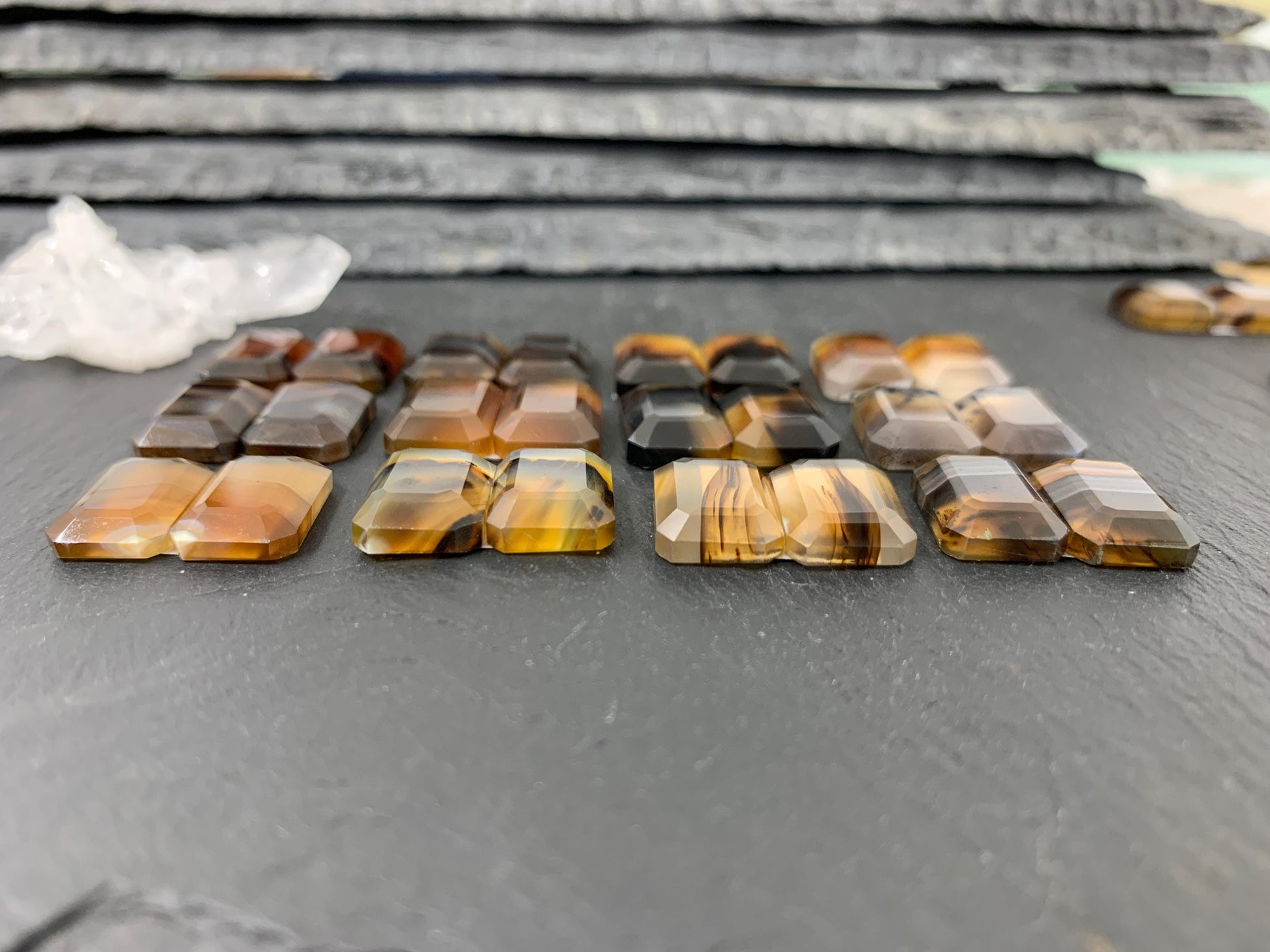 Faceted Montana Agate rectangle 10x14mm cabochon - Buy by pair