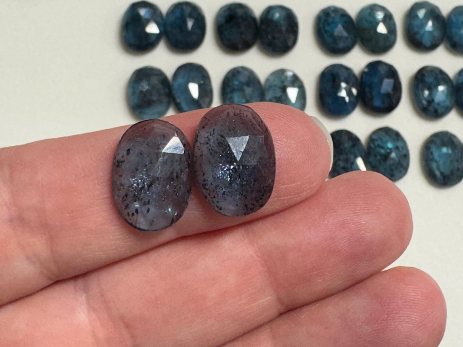 Faceted Moss Kyanite oval pair 10x14mm cabochon