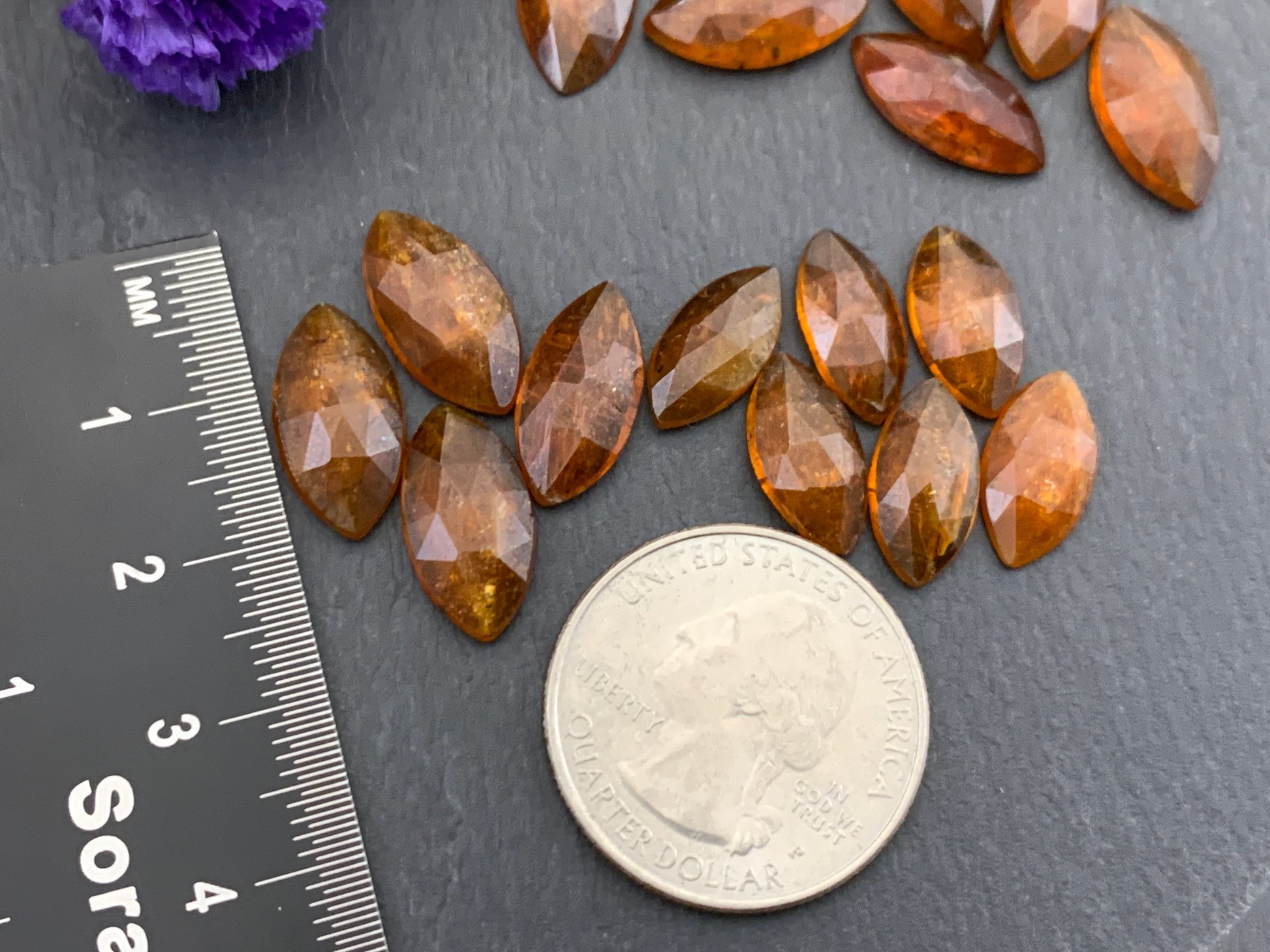 Faceted orange Kyanite marquise 13-16mm long cabochons