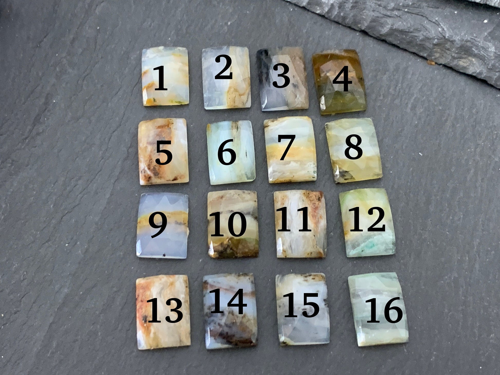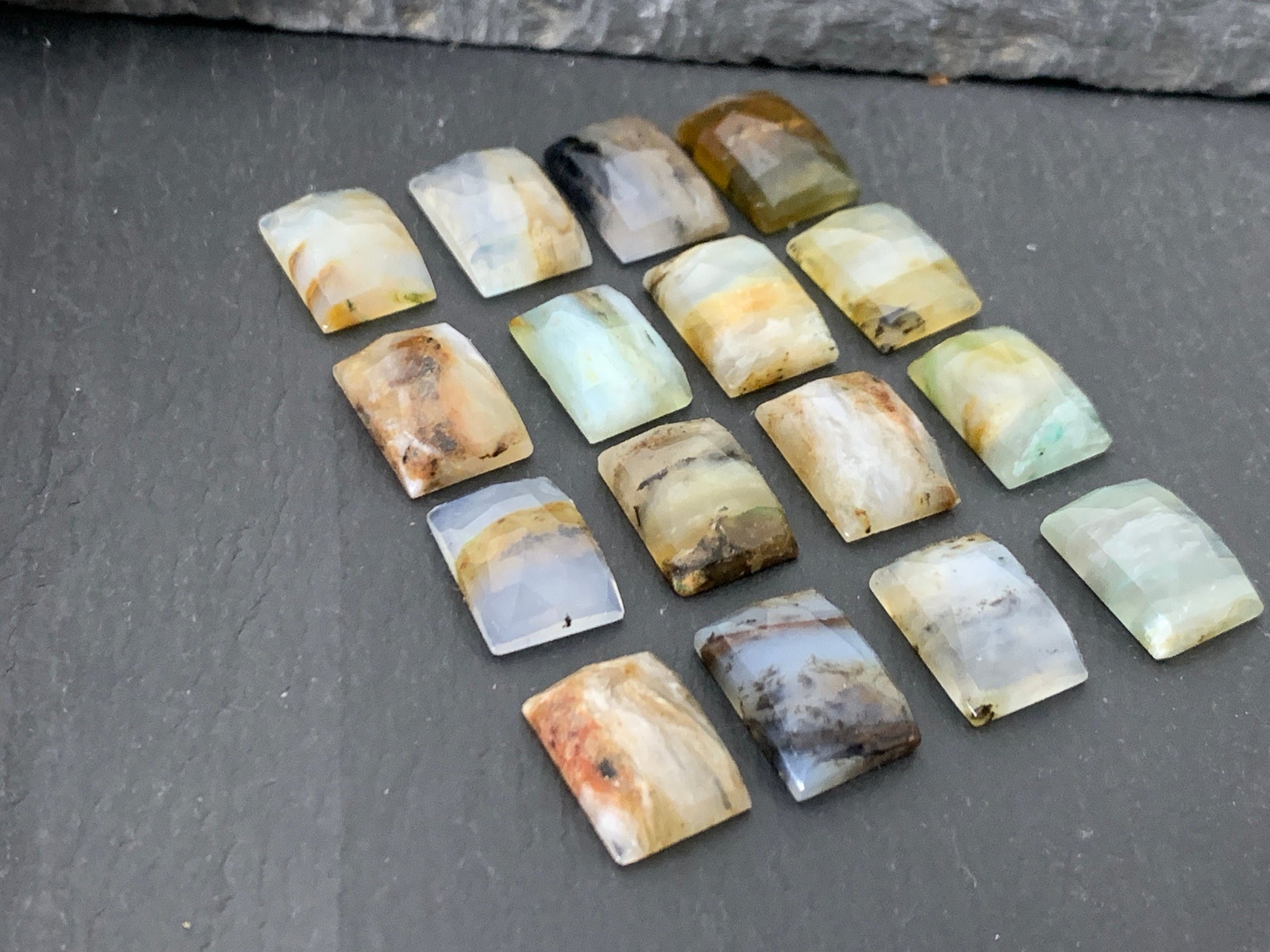 Faceted Peruvian Opal rectangle 10x14mm cabochon
