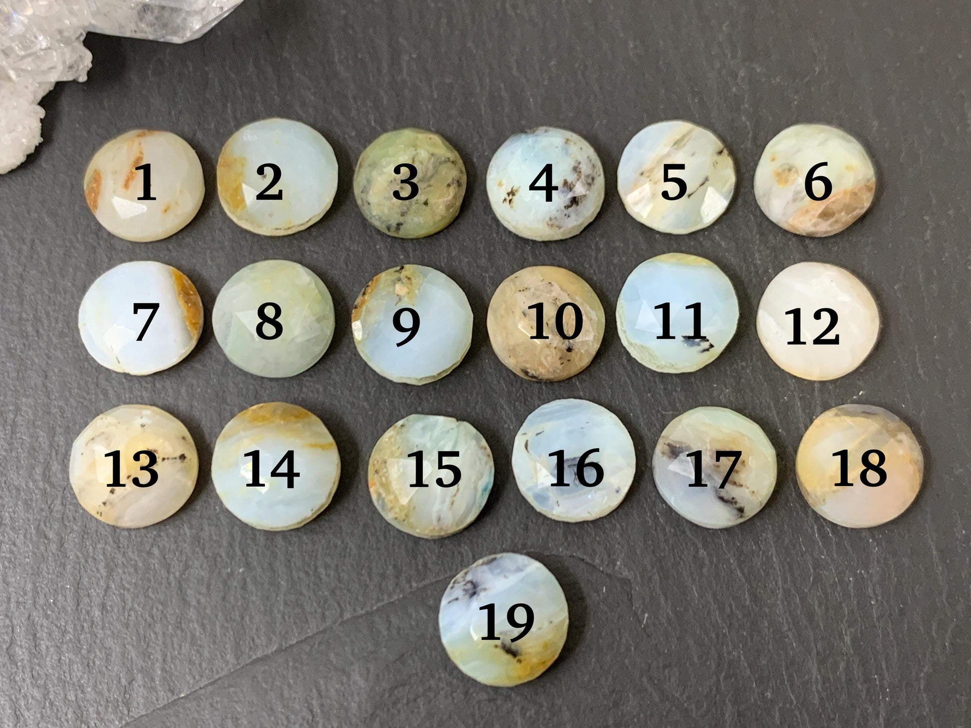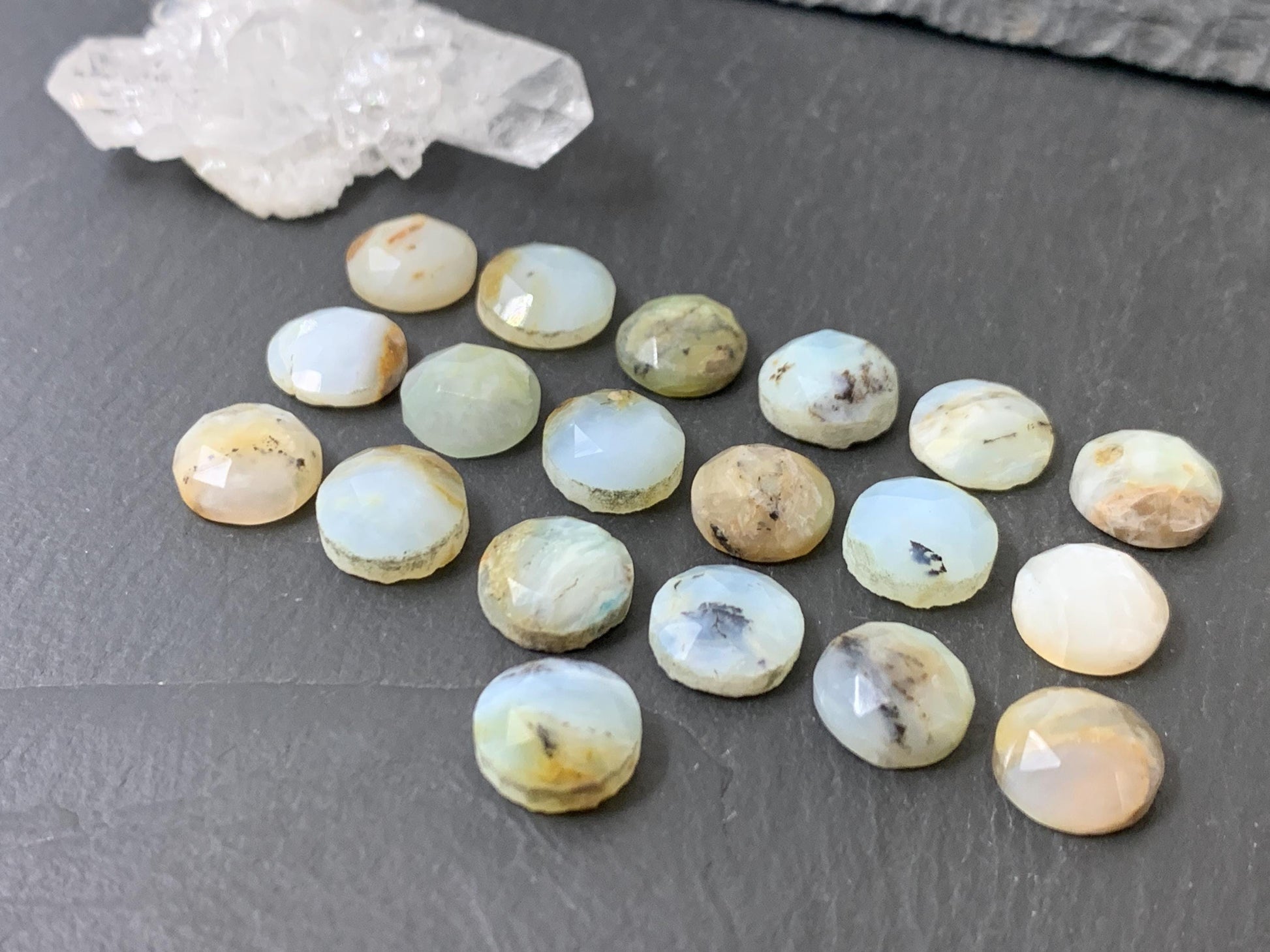 Faceted Peruvian Opal round 10mm cabochon