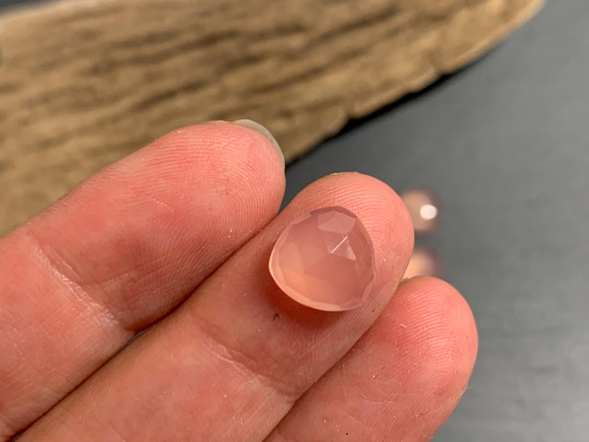 Faceted Pink Chalcedony triangle 10mm cabochon
